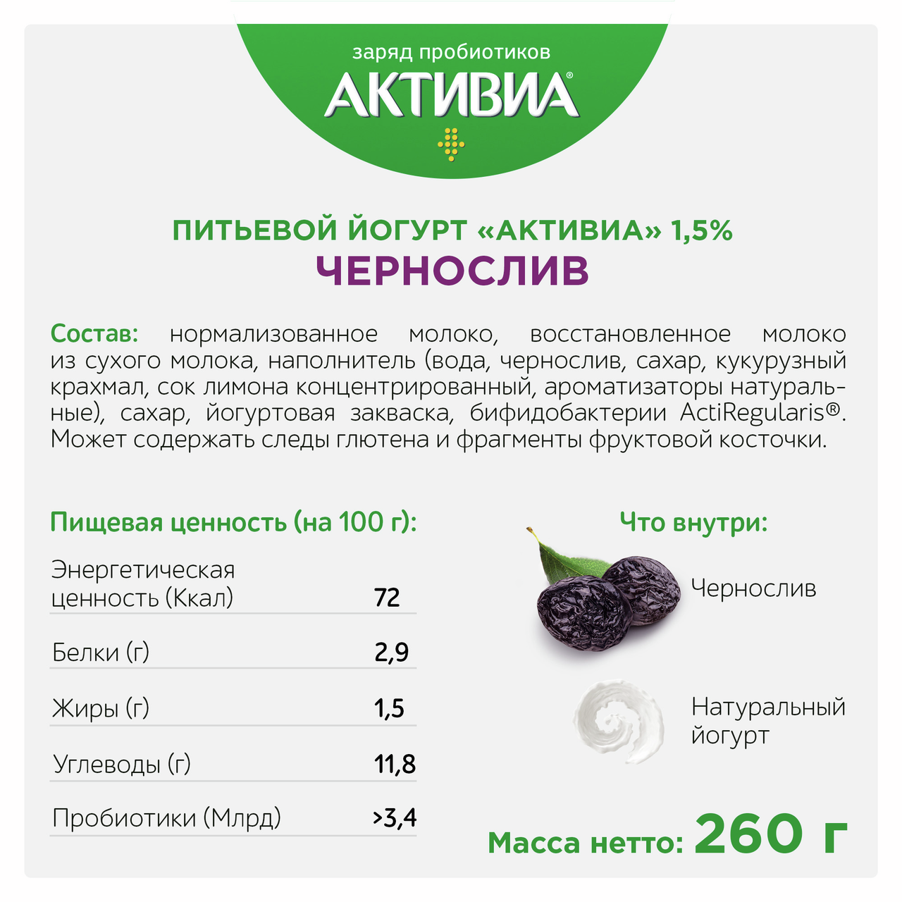 Йогурт Активиа питьевой чернослив 1.5%, 260г