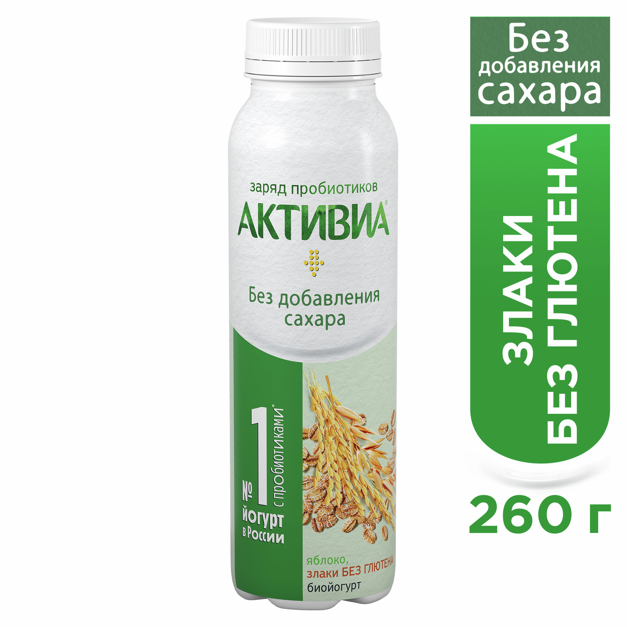 Йогурт Активиа питьевой яблоки-злаки без сахара 1.5%, 260г