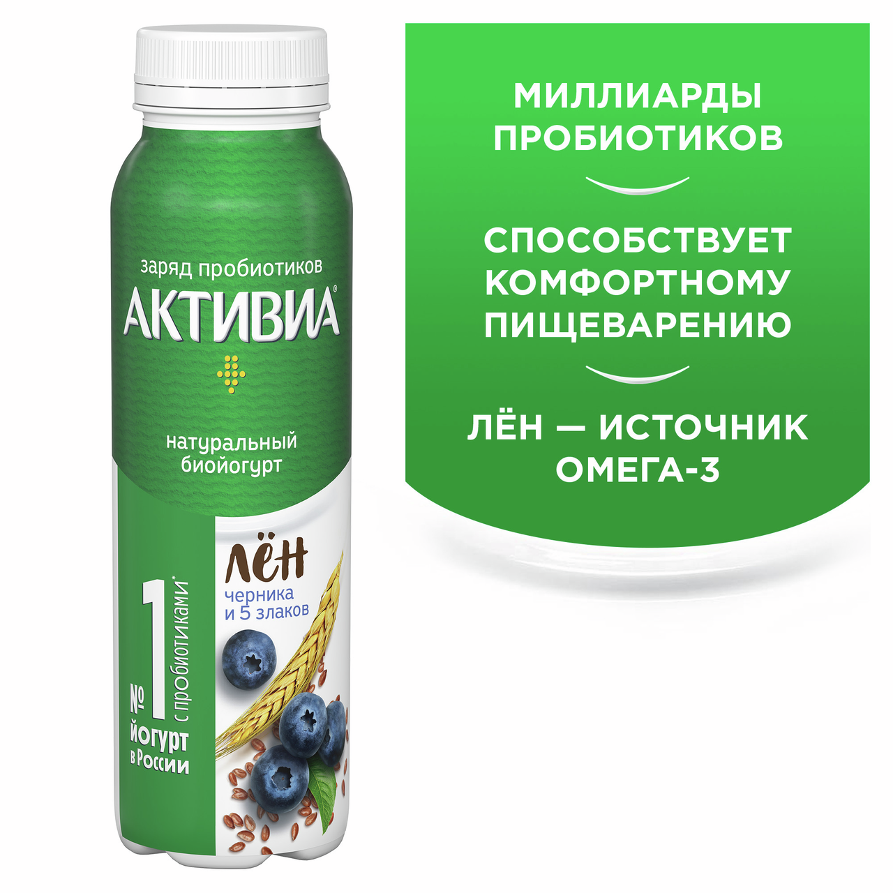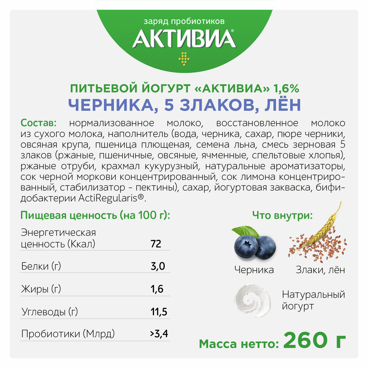 Натуральный продукт, изготовленный на основе высококачественного коровьего молока с добавлением сладкого ягодно-злакового наполнителя и закваски. Дополнительно обогащен миллиардами пробиотиков, которые оказывают благотворное влияние на процесс пищеварения. Обладает нежной текстурой с включениями льняных семечек и небольших кусочков черники. Отличается приятным вкусом с нотками спелых ягод и злаков. Это не просто вкусный, но и очень полезный кисломолочный напиток, который обогащает организм ценными веществами и дарит мощный заряд энергии. Легкий йогурт в удобной бутылочке прекрасно подходит для перекуса дома, в офисе, на прогулке или в спортзале. Активиа – это комфортный способ регулярно заботиться о фигуре и микробиоте кишечника. Все продукты этого бренда производятся исключительно из отборных ингредиентов без использования заменителей молочного жира.