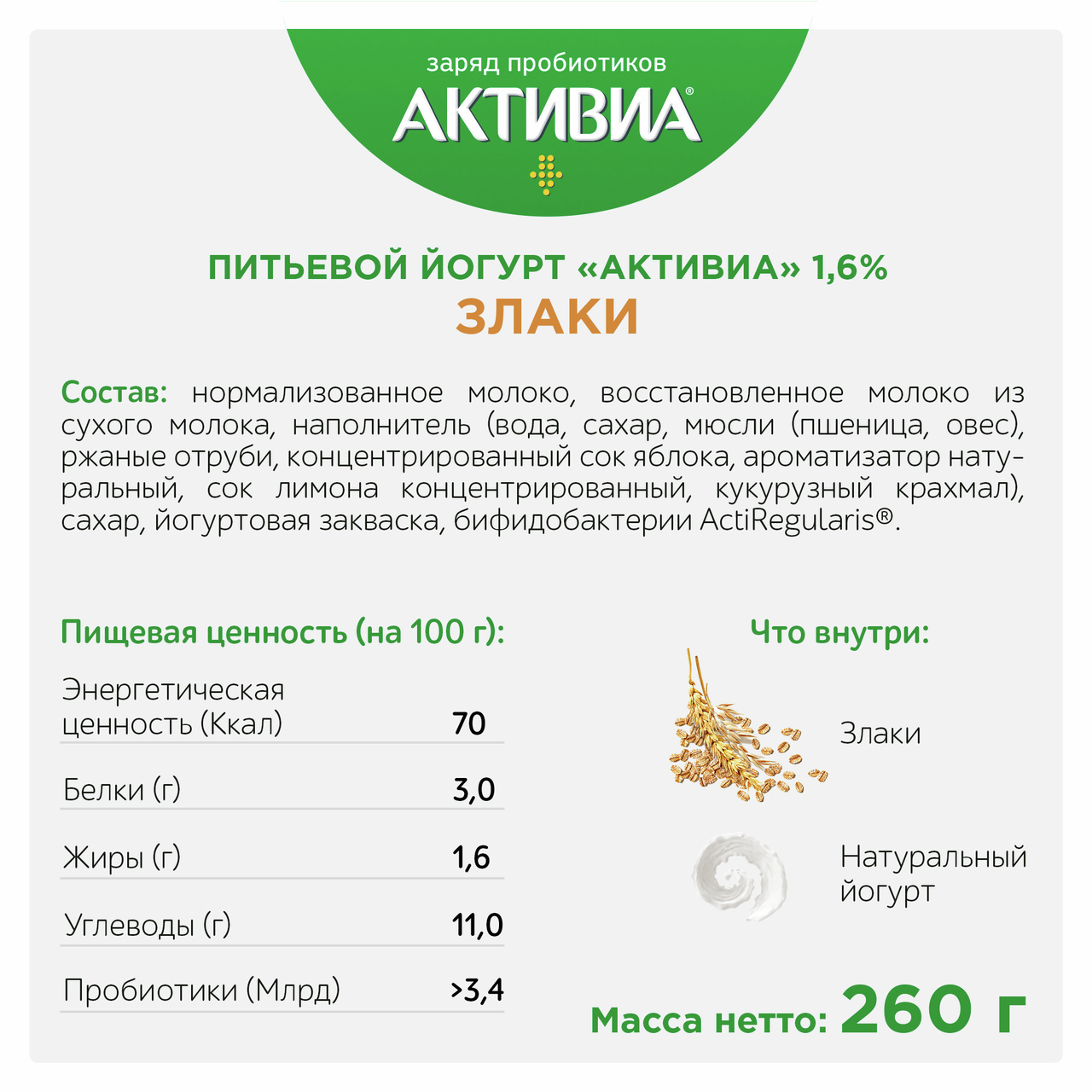 Йогурт Активиа питьевой злаки 1.6%, 260г