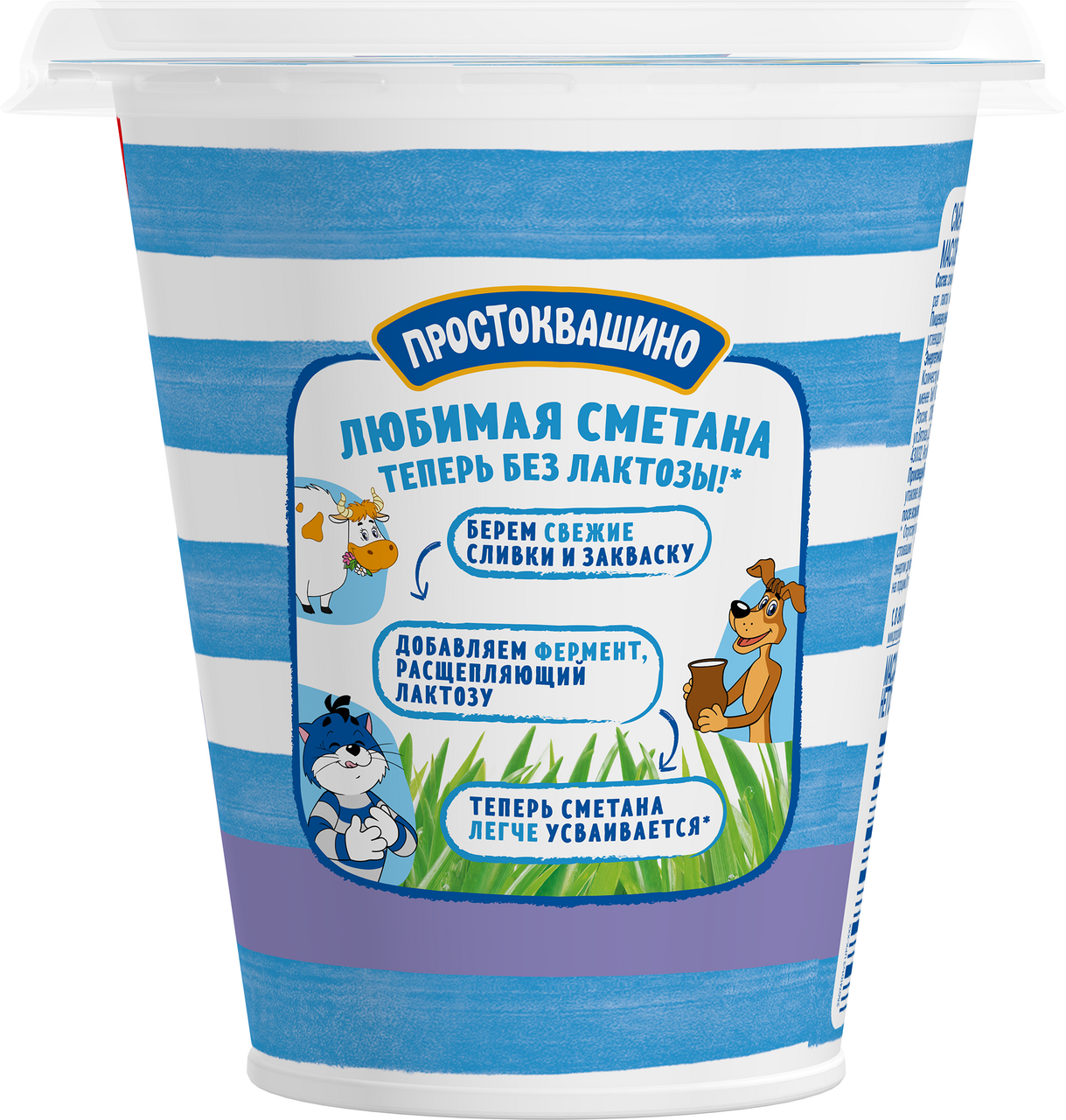Простоквашино заботится о каждой семье. Даже при непереносимости лактозы теперь можно есть сметану от любимого бренда и чувствовать себя легко и комфортно. Безлактозная сметана Простоквашино - такая же как обычная сметана, только без лактозы. Отсутствует лактоза по сравнению со сметаной Простоквашино.