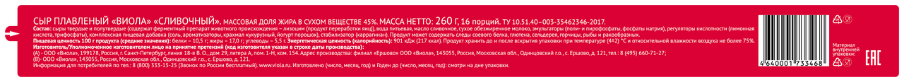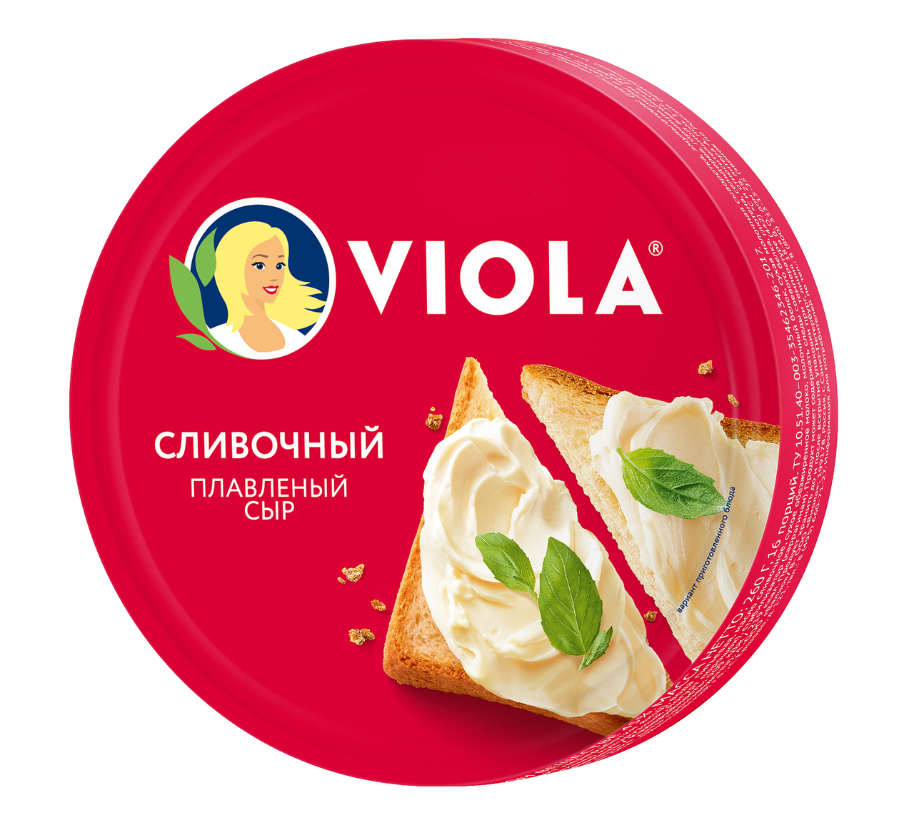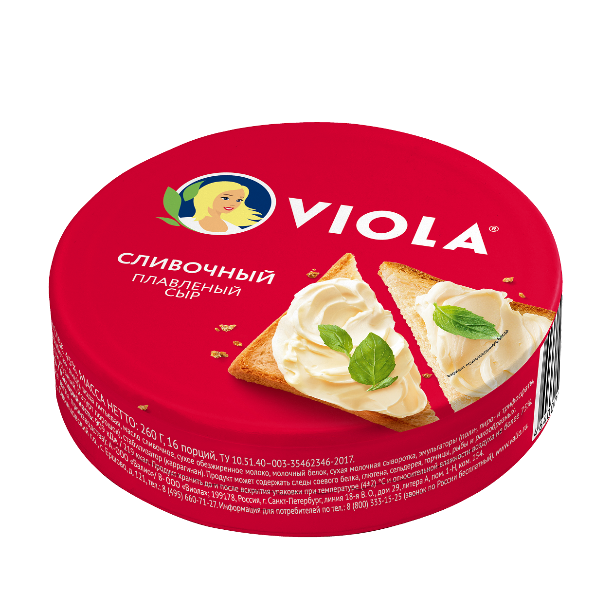 Знакомый вот уже трем поколениям россиян, плавленый сыр Viola - это неизменная блондинка на упаковке и превосходный вкус внутри. Плавленый сыр Valio делается только из качественных натуральных ингредиентов по современной технологии и уникальной рецептуре. Для производства Viola используются твердые и полутвердые сыры, сливочное масло и сухое молоко, именно поэтому он получается таким вкусным и сливочным. Благодаря своему неизменно высокому качеству и вкусу, плавленый сыр Viola вот уже шесть раз становился обладателем почетной премии Товар года. Русская культура самобытная и многогранная, что мы и хотели подчеркнуть дизайном упаковки в цвете триколора, где в элементах окантовки скрываются традиционные российские символы – декоративная роспись, самовар, балалайка, сказочная птица. Продукт делается на основе высококачественных натуральных ингредиентов по уникальной рецептуре. В его состав входят твердые и полутвердые сыры, а также настоящее сливочное масло. Сыр имеет нежнейшую текстуру, поэтому хорошо намазывается на тосты, крекеры или хлебные ломтики. Благодаря удобному формату треугольников его удобно брать с собой на пикник, в дорогу, на дачу. В картонной упаковке 16 порций. Продукция не содержит антибиотиков, гормонов и стимуляторов роста.