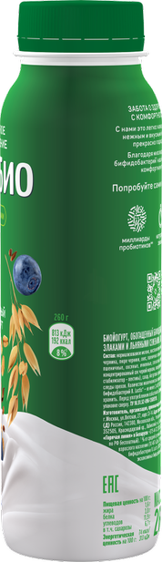 Это уникальный питьевой йогурт, в составе которого более девяти миллиардов живых пробиотиков. Участвуя в пищеварении, они помогают обрести комфорт и лёгкость. Отборные злаки, ароматная лесная черника, молоко и специальная закваска делают этот кисломолочный продукт желанным гостем на столе поклонников здорового образа жизни, спортсменов и любителей вкусных качественных напитков. Йогурт может стать здоровым перекусом, отлично подойдёт для завтрака, его можно добавлять в летние салаты.