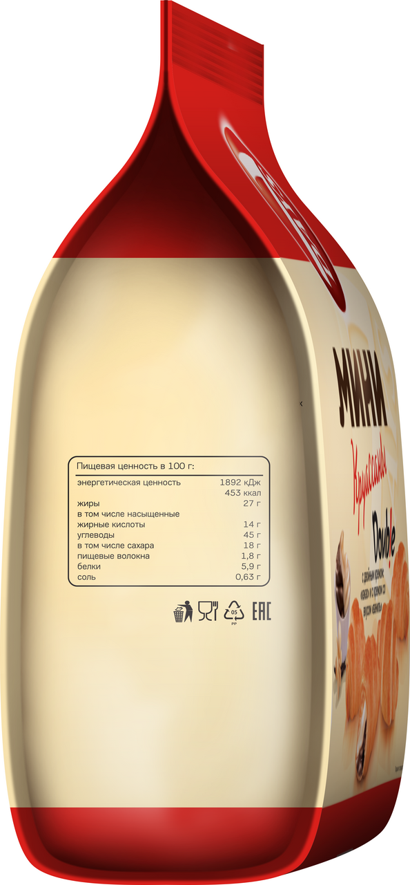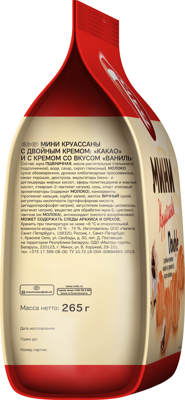 Участвует в конкурсе: Выиграйте кофемашину на сладкое! Совершите покупку товаров-участников на сумму от 1500₽ с 23 октября 2025г. по 14 января 2026г. и получите шанс выиграть кофемашину или другие сладкие призы! Чем больше покупок - тем больше шансов на победу! Подробнее об акции - https://cdn.metro-cc.ru/ru/mndlz_2025.pdf. Мини круассаны 7Days Double - мини-версия круассанов из мягкого слоеного теста с двойной начинкой: какао и ваниль. Такой дуэт точно придется по душе всем любителям сладостей! Выпечка 7Days - идеальный вариант для завтрака, который отлично дополнит горячие напитки. Ешьте круассаны с чаем, какао или с чашкой ароматного кофе. Мини круассаны с двойной начинкой также станут хорошим перекусом в течение дня. Получите заряд хорошего настроения и сделайте перерыв еще вкуснее. Мини круассаны в большой упаковке 265г - удобный формат для пикника, поездки в поезде в компании семьи или друзей.