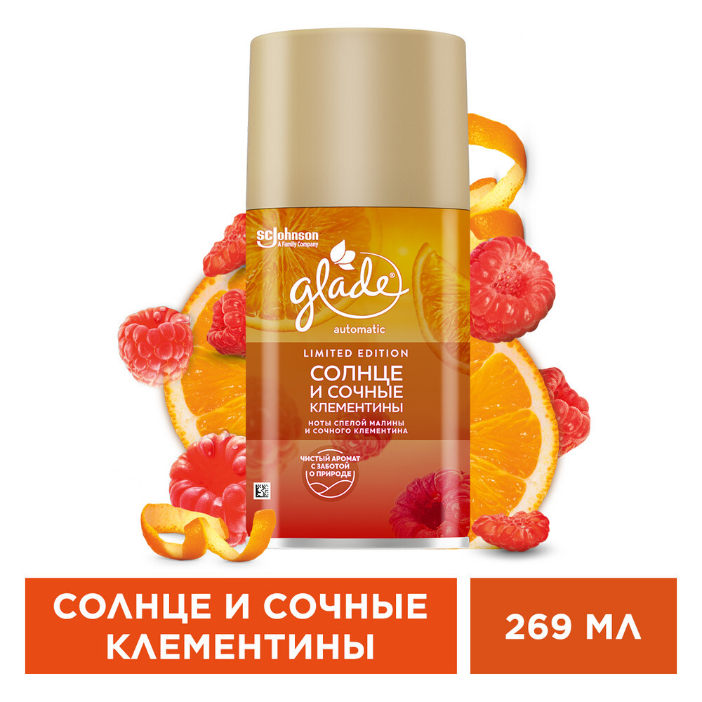 Солнечные фрукты соединяются со всем великолепием природы, создавая освежающий и веселый аромат. Яркий клементин в сочетании с сочными ягодами и ароматными цветами помогут взбодриться и добавят ярких красок в вашу жизнь.Лимитированная коллекция.Универсальный сменный баллон, подходит к любым автоматическим освежителям воздуха. Аромат 24/7, до 2400 распылений. Разработано без фталатов, парабенов и формальдегида.