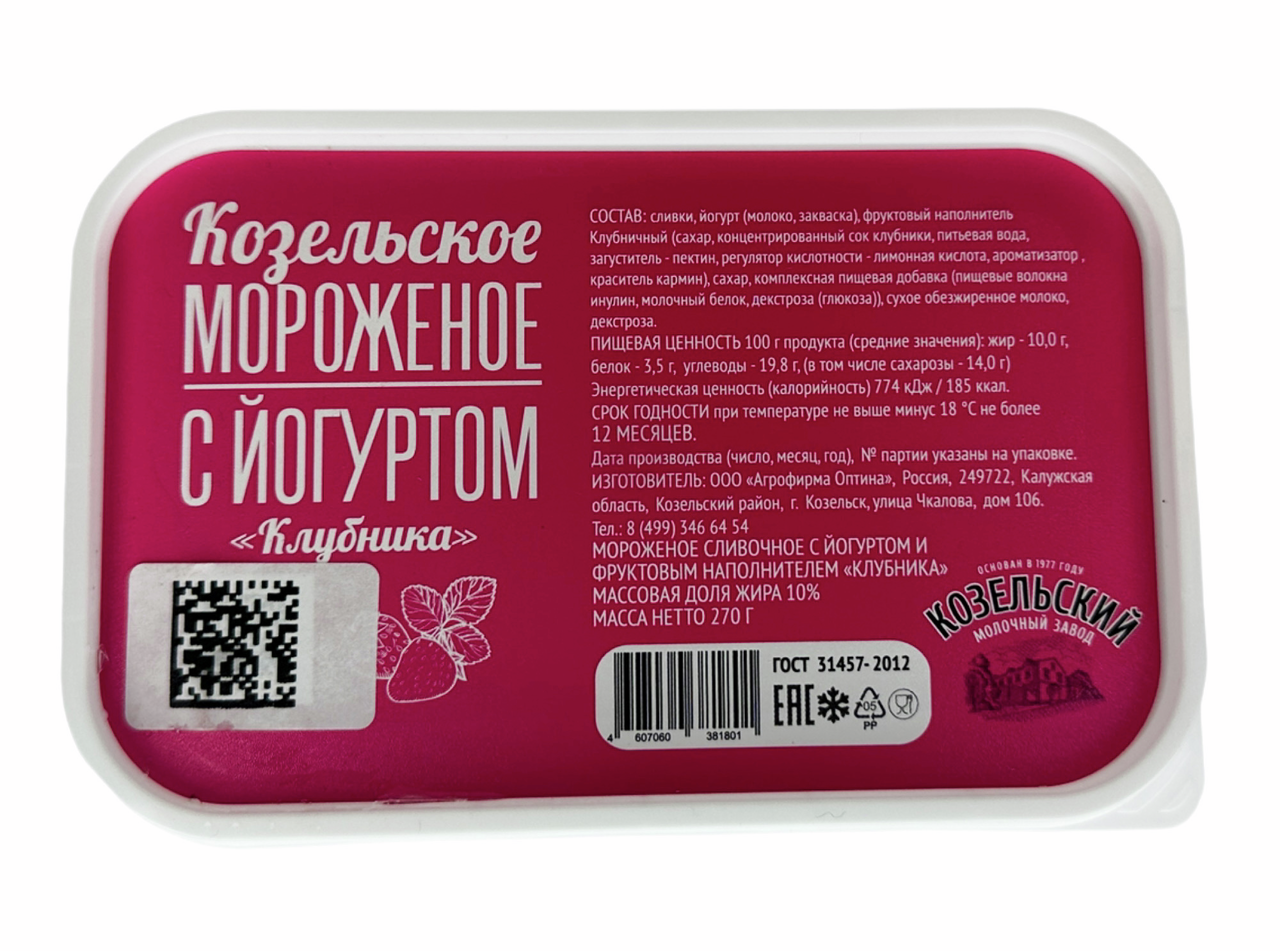 Мороженое пломбир Козельское молоко Клубника с йогуртом ГОСТ, 270г