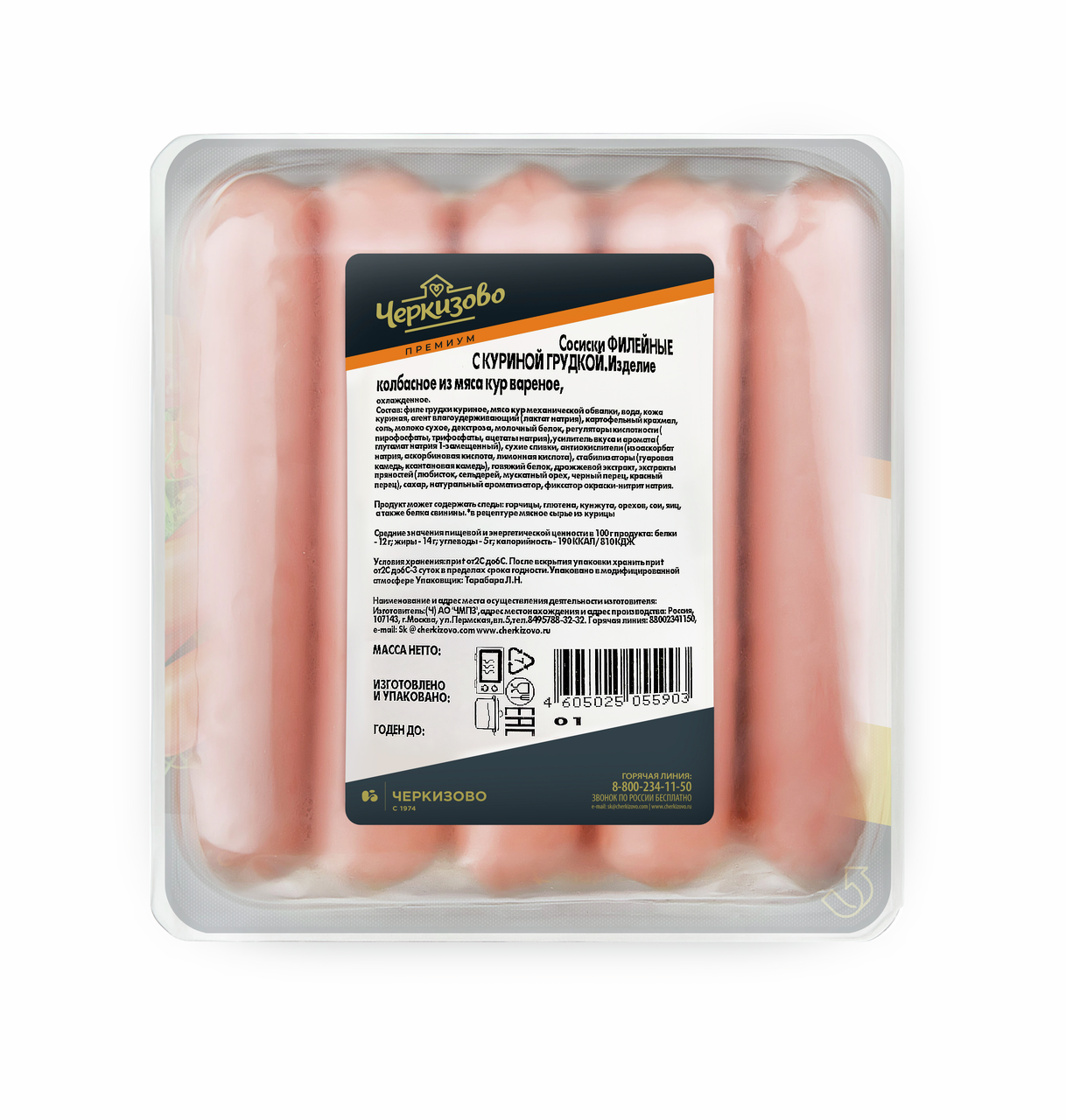 Сосиски Черкизово Премиум филейные с куриной грудкой, 270г