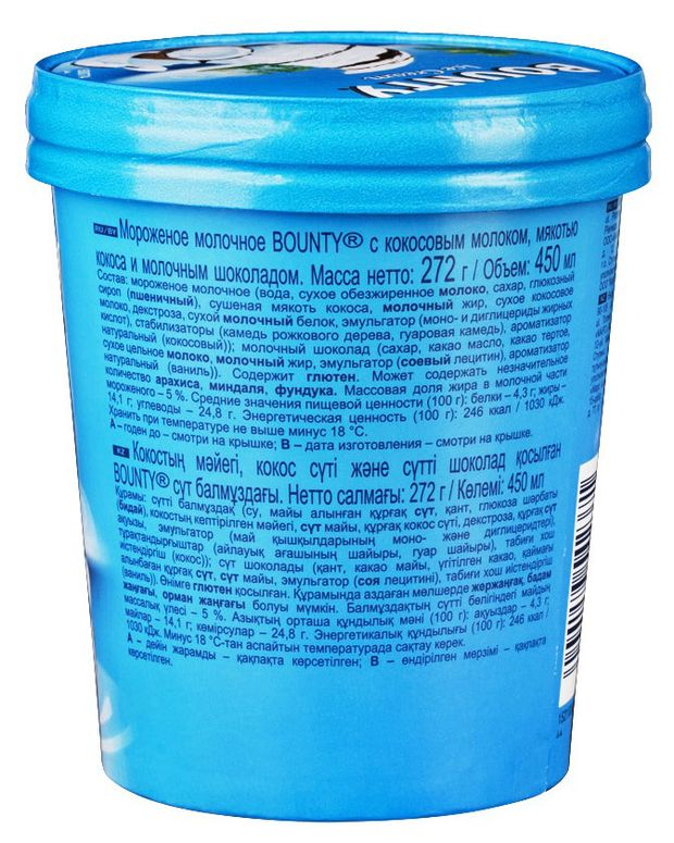 Мороженое молочное Bounty с кокосовым молоком, мякотью кокоса и шоколадом, 272г