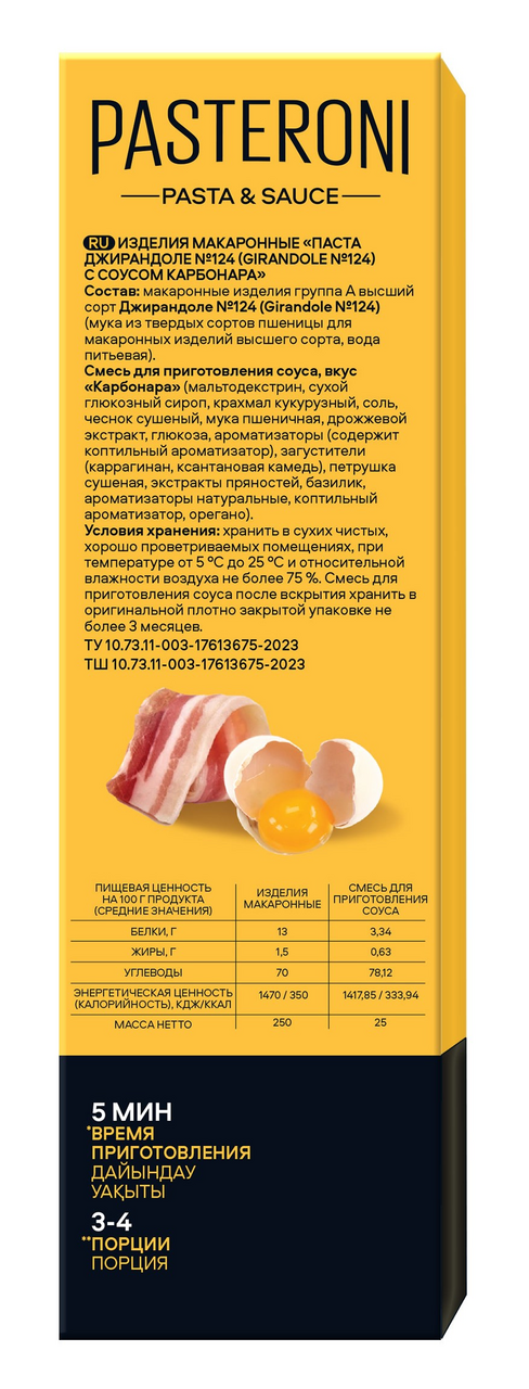 Макароны Pasteroni Джирандоле №124 соус карбонара, 275г