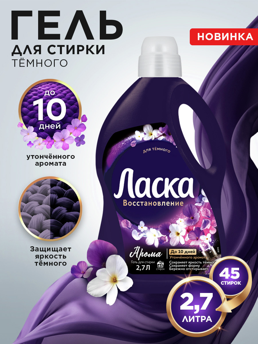 Гель для стирки Ласка Арома Восстановление для темного, 2.7л
