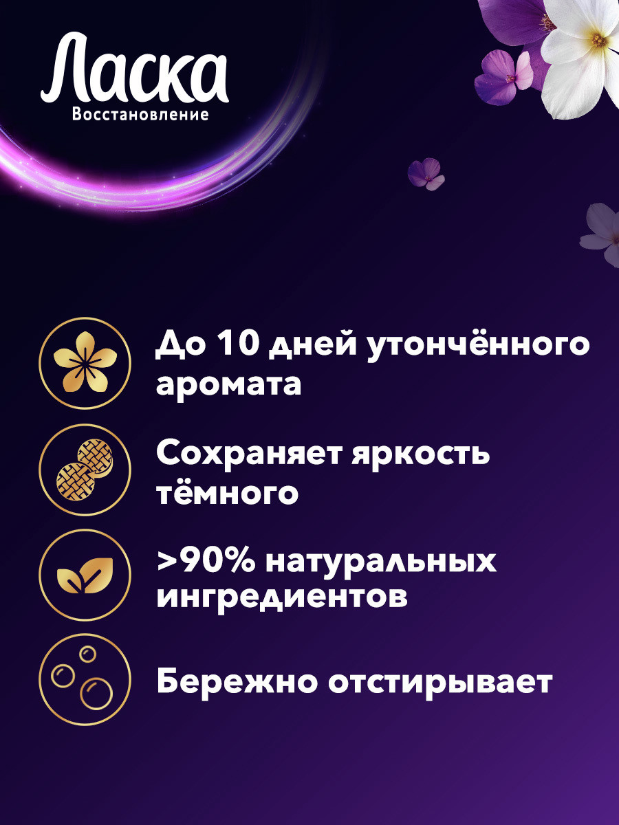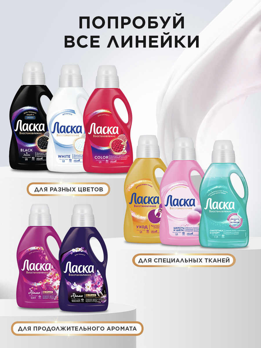 Эффективно и бережно отстирывает загрязнения на одежде и белье, окутывая вещи неповторимым утонченным ароматом. В отличие от обычного стирального порошка, Ласка содержит специальные цветозащитные ингредиенты, которые поддерживают первозданную красоту и обеспечивают стойкость цвета вашей одежды. Активные компоненты способствуют уменьшению количества катышков на ткани. Бережно и эффективно отстирывает загрязнения. Восстанавливает и защищает яркость цвета. Дарит утонченный аромат. Сохраняет форму ткани. Не оставляет разводов на одежде. Гель Ласка удобен в использовании: дозируйте жидкое средство согласно инструкции, заливайте его в отделение для стирального порошка или добавьте мерный колпачок со средством для стирки в барабан стиральной машины. Цвет геля может варьироваться от молочного до светло-розового.