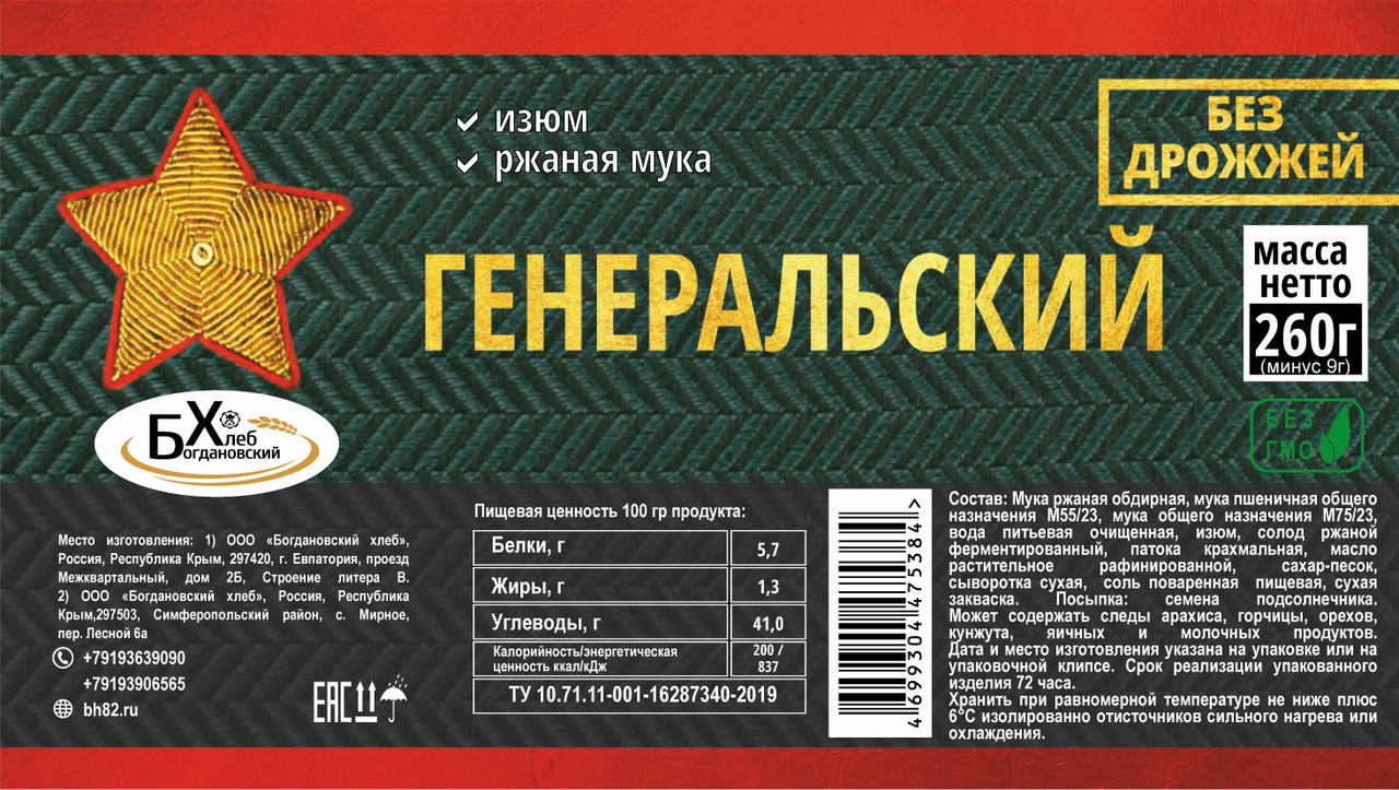 Хлеб Богдановский хлеб Генеральский бездрожжевой, 280г
