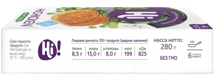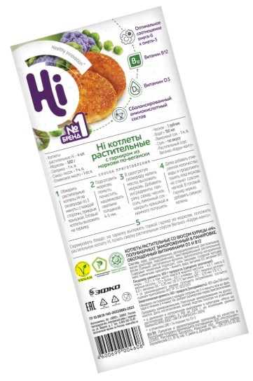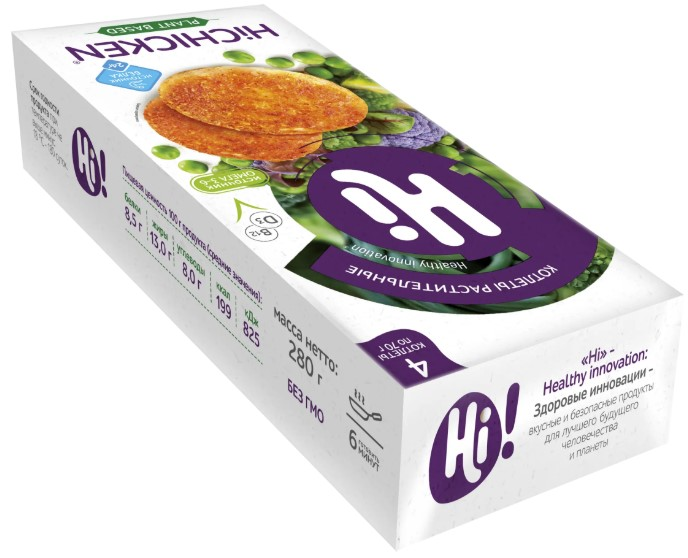 Котлеты куриные Hi — это инновационные продукты для тех, кто бережно относится к своему здоровью. Полезная альтернатива классическому мясу, которая не уступает ему по вкусу и пищевой ценности. Котлеты HiChicken — это сочное растительное мясо Hi с нотками пряных специй и хрустящая панировка. Диетическое блюдо для тех, кто следит за фигурой или ищет вкусную замену блюдам из традиционного мяса. Котлеты идеально сочетаются с легкими летними салатами из свежих овощей и сытными гарнирами — картофелем по-деревенски, пюре, крупами. Растительные котлеты HiChicken обогащены Омега-3, Омега-6 и витаминами D3 и В12. Попробуйте мясо Hi и сделайте ваше меню еще вкуснее и полезнее! Подходит для питания: веган, вегетарианцы, халяль, пост, фитнес, диета при избыточном весе.