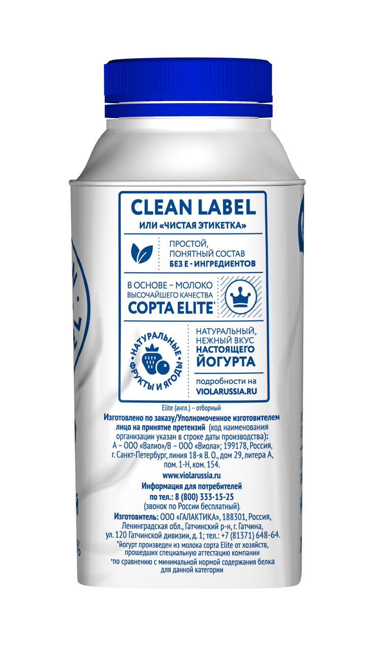 Йогурт питьевой Viola натуральный 0.4%, 280г БЗМЖ (без заменителя молочного жира) – полезный продукт, который изготовлен на основе молока и закваски. Он не содержит заменителей молочных жиров и обладает приятным вкусом с легкой кислинкой. Продукт представлен в эргономичной упаковке. Она не займет много места при хранении в холодильнике. Он станет прекрасным вариантом для быстрого и питательного перекуса, а также легкого ужина или завтрака. Его можно подать к столу с печеньем гренками и другими мучными десертами. Натуральный йогурт допустимо также использовать для приготовления полезных смузи или для заправки фруктовых салатов. Регулярное употребление йогурта не только повышает сопротивляемость организма, но и восстанавливает полезную микрофлору кишечника. Входящий в состав кисломолочных продуктов кальций благотворно влияет на состояние зубов и костей. Кроме того, в йогурте обязательно присутствует полезная для кишечника молочная кислота. Он богат белками, которые хорошо усваиваются. Эти элементы служат основным материалом для построения растущих и воспроизведения разрушающихся тканей.