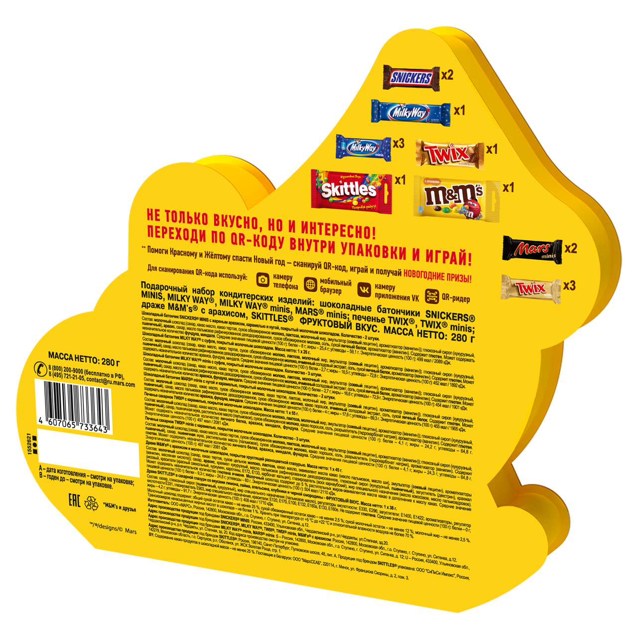Подарочный набор M&M's & Friends Сани – способ порадовать близких в наступающий Новый год и Рождество 2023. Сладкий новогодний подарок содержит в себе драже M&M's и шоколадные батончики Snickers, Mars, Twix, Milky Way. Новогодняя подарочная упаковка в форме саней, веселые герои M&M's и любимые сладости – отличное угощение на праздничный стол и прекрасный подарок для ребенка.