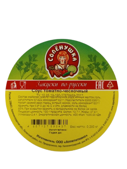 Соус Солёнушка томатно-чесночный, 280г