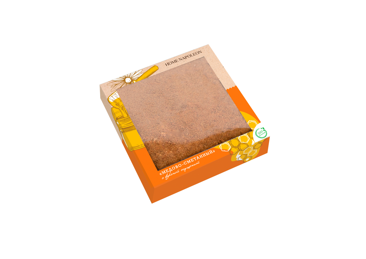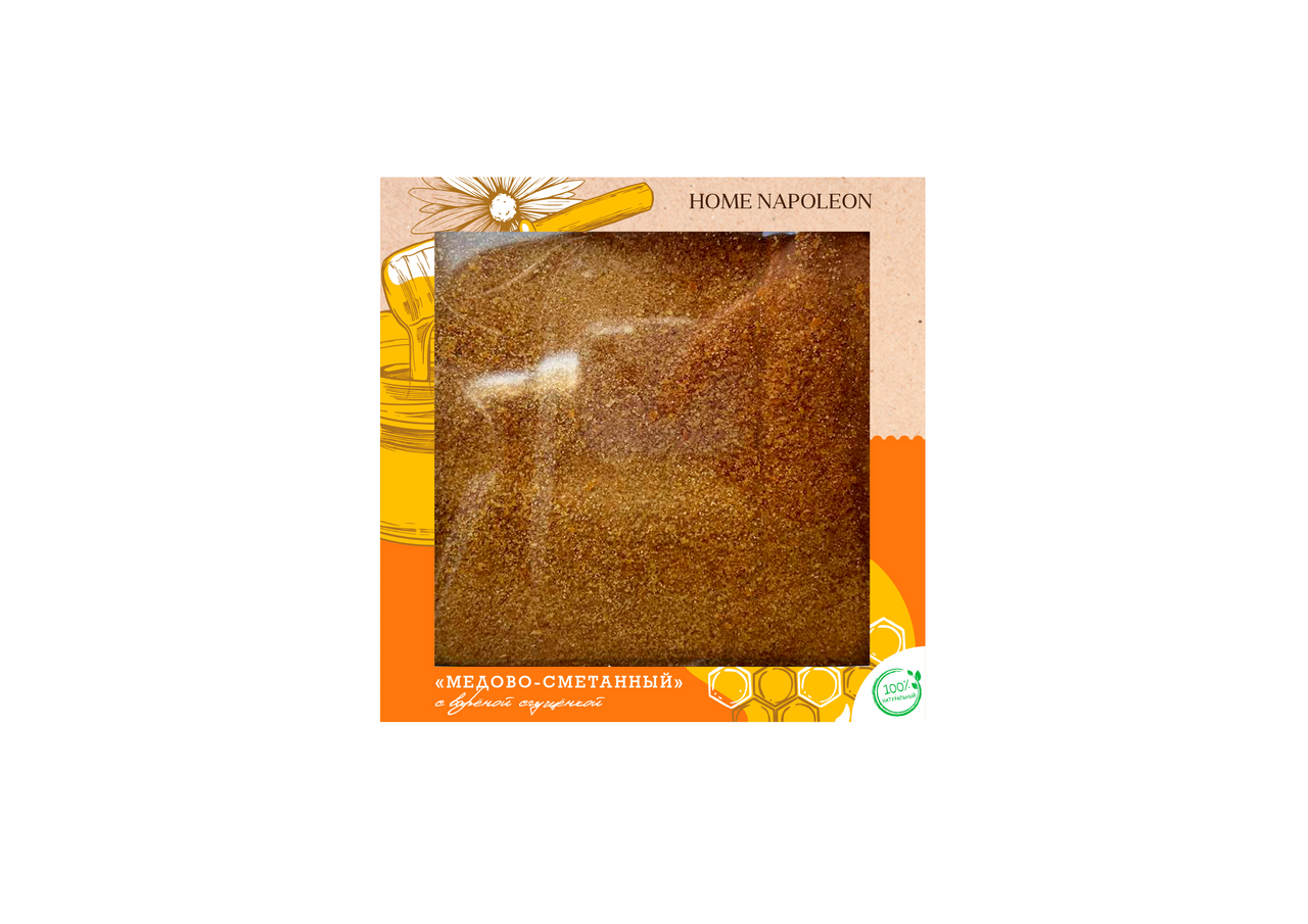 Сметана м. д. ж. 20% (сливки нормализованные, заквасочные микроорганизмы), сливки питьевые ультрапастеризованные м. д. ж. 33% (сливки нормализованные), мука пшеничная хлебопекарная высшего сорта, меланж яичный жидкий пастеризованный, сахар, мед натуральный цветочный, масло сладко-сливочное несоленое м. д. ж. 72,5% , разрыхлитель - гидрокарбонат натрия (сода пищевая), сок лимона прямого отжима. Продукт содержит глютен, яичные и молочные продукты; Может содержать следы соевого лецитина, арахиса и других орехов.