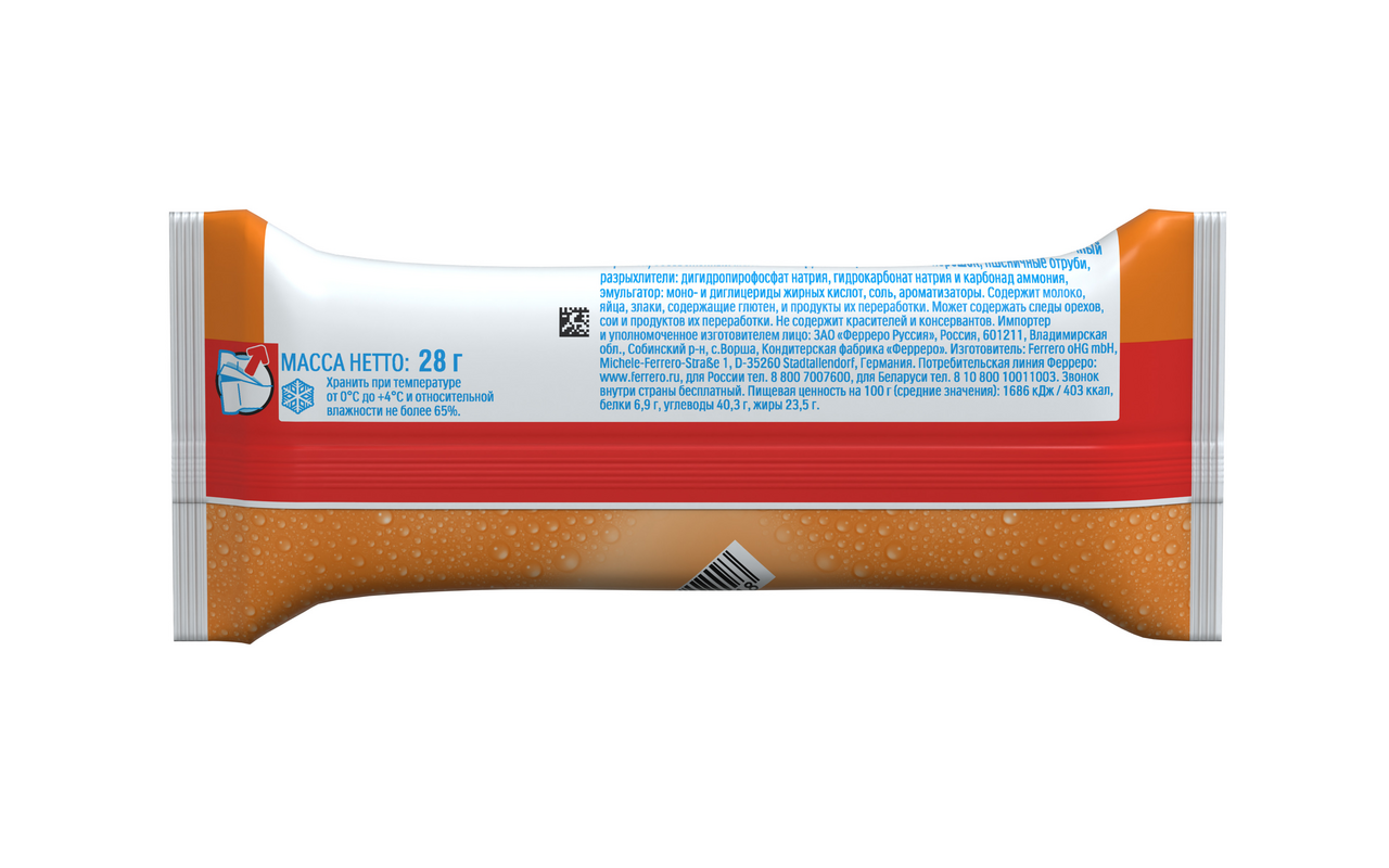В нем есть все, что так любят дети: капелька меда, натуральное молоко (40%) и нежный бисквит. Команда экспертов Kinder использует инновационные технологии и проверяет сырьё на каждом этапе производства, что позволяет обеспечить высочайшее качество и отменный вкус ваших любимых продуктов. Благодаря компактному размеру и герметичной упаковке пирожное можно дать ребенку с собой в школу, секцию или на прогулку. Производитель гарантирует отсутствие красителей и консервантов.