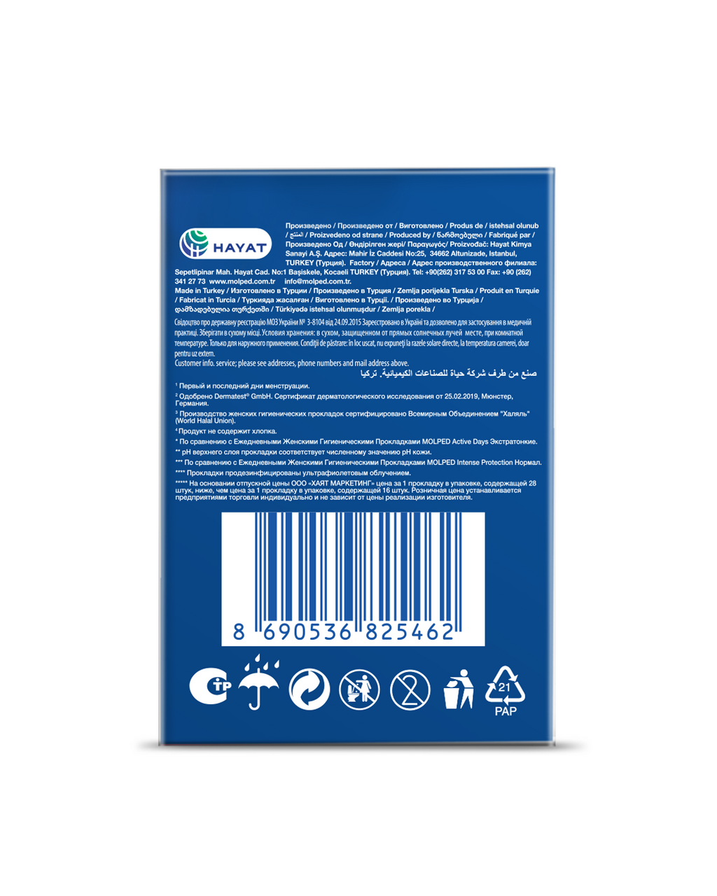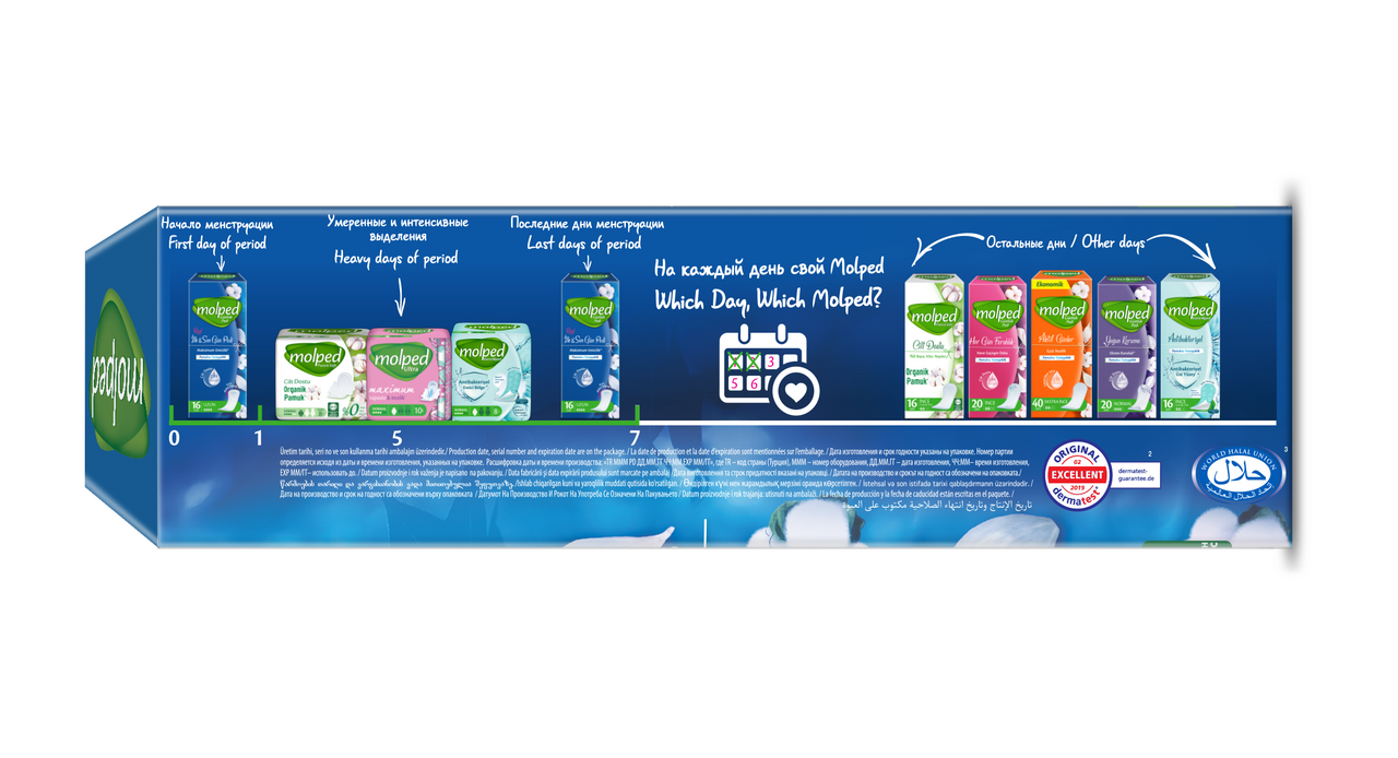 Прокладки Molped First&Last Days c мягкой поверхностью бережно относятся к коже, не вызывают раздражения и сыпи. Прокладки супервпитывающие, дышащие и подходят для любого типа белья. Они дерматологически протестированы и содержат 0% нейлона, хлора и парабенов, обеспечивая максимальный комфорт твоей коже. Это ежедневные прокладки, которые обеспечивают комфорт и свежесть на протяжении всего дня. Они имеют мягкий и приятный на ощупь материал, который не раздражает кожу. Прокладки Molped доступны в различных размерах и толщинах, что позволяет выбрать наиболее подходящий вариант для каждой женщины. Кроме того, они обладают хорошей впитываемостью и защитой от протеканий, что делает их идеальным выбором для ежедневного использования.