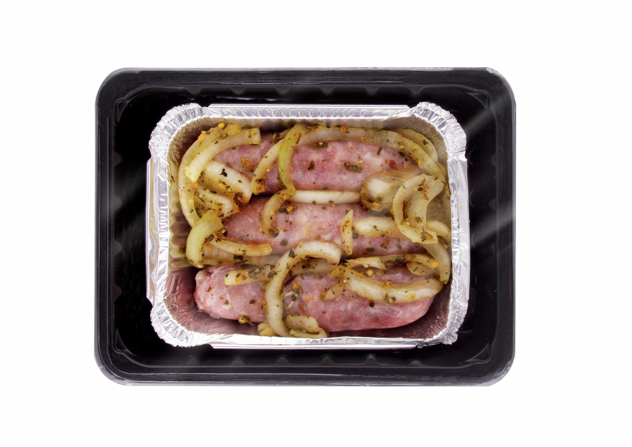 Свинина, в том числе диафрагма, вода, лук маринованный, животный белок говяжий, соль, сухой уксус, регуляторы кислотности: цитраты натрия, трифосфаты, стабилизатор полифосфаты, загустители: Е1414, Е415, пряности и экстракты пряностей в том числе петрушка, перец красный чили, сельдерей, сахара, горчица, чеснок сушеный, овощи сушеные, цедра лимона сушеная, экстракт дрожжей, усилитель вкуса и аромата глутамат натрия, антиокислители: аскорбиновая кислота, лимонная кислота, экстракты розмарина, ароматизаторы, масло растительное оливковое.