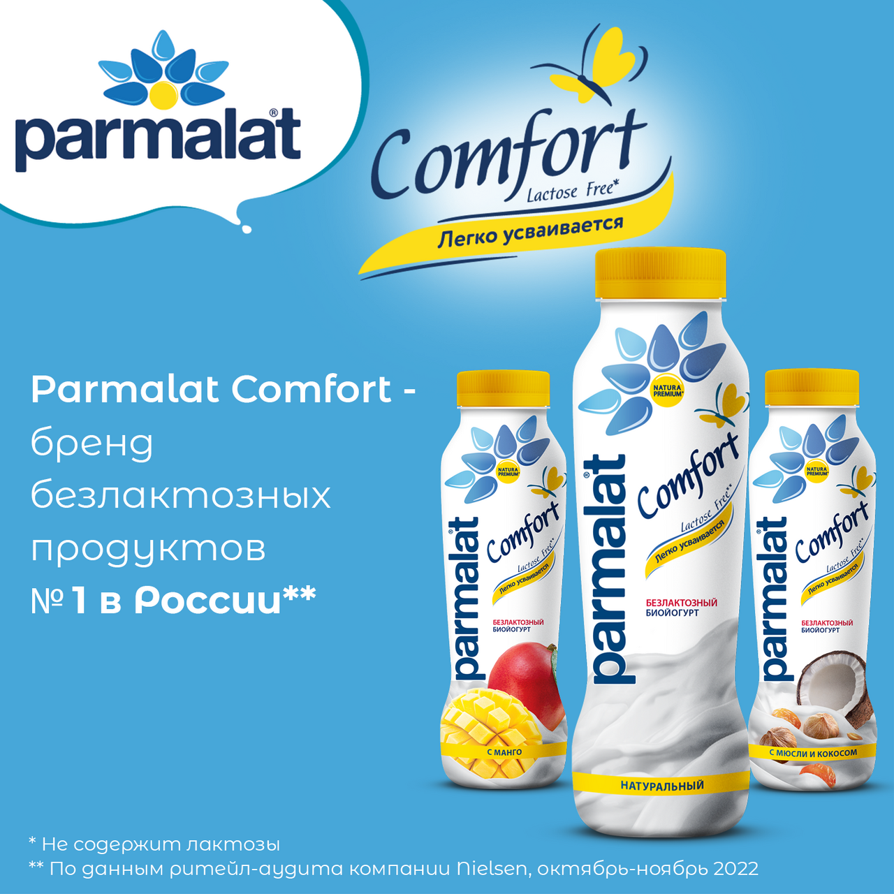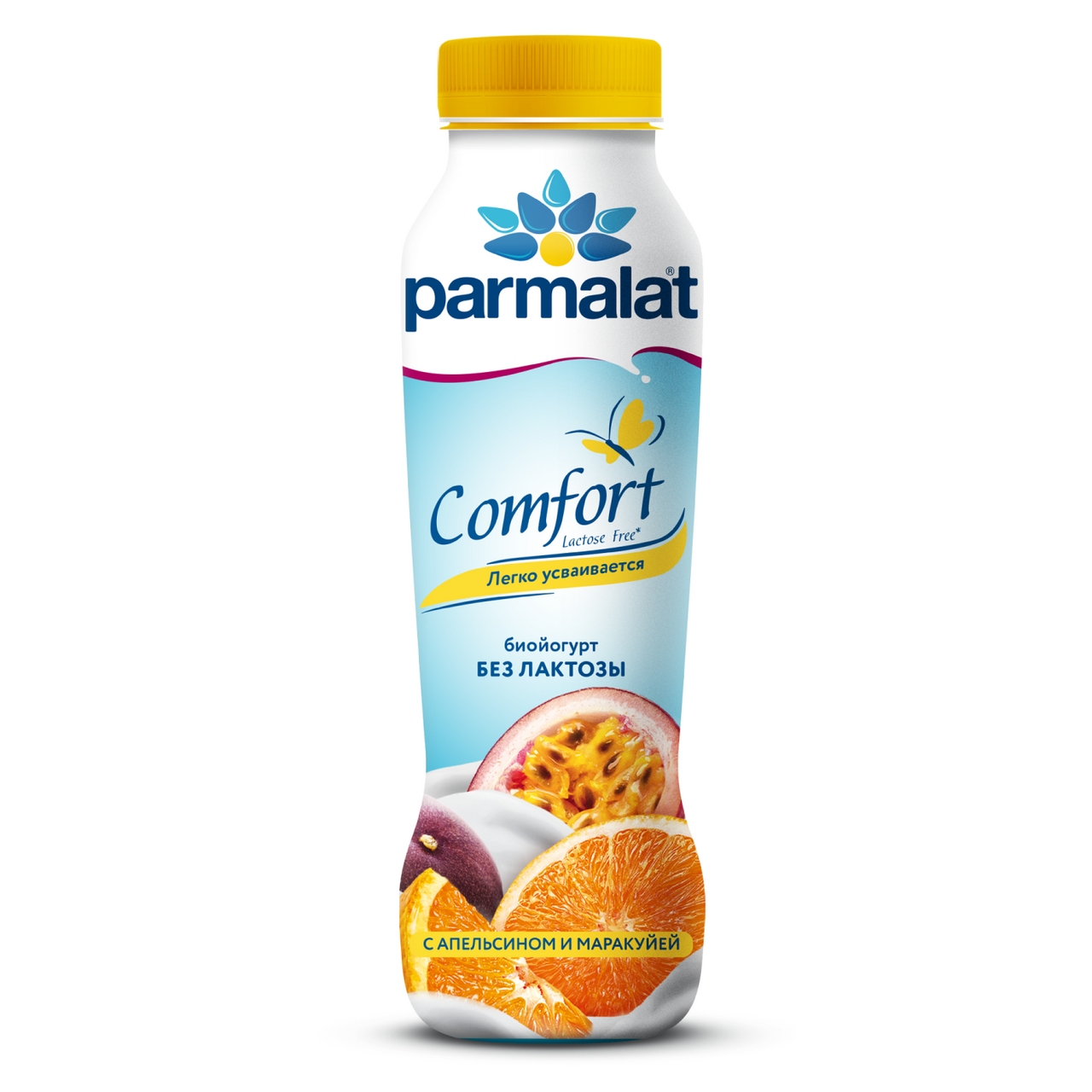 Йогурт питьевой Parmalat безлактозный апельсин и маракуйя, 290г БЗМЖ легко усваиваются, потому что произведены из безлактозного молока. Они не содержат лактозы – молочного сахара, который может провоцировать тяжесть и неприятные ощущения во время пищеварения.