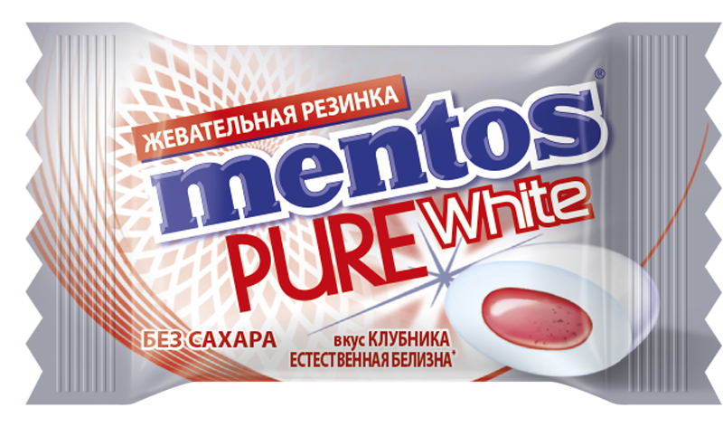 Жевательная резинка Mentos Pure White Клубника, 2г x 100 шт