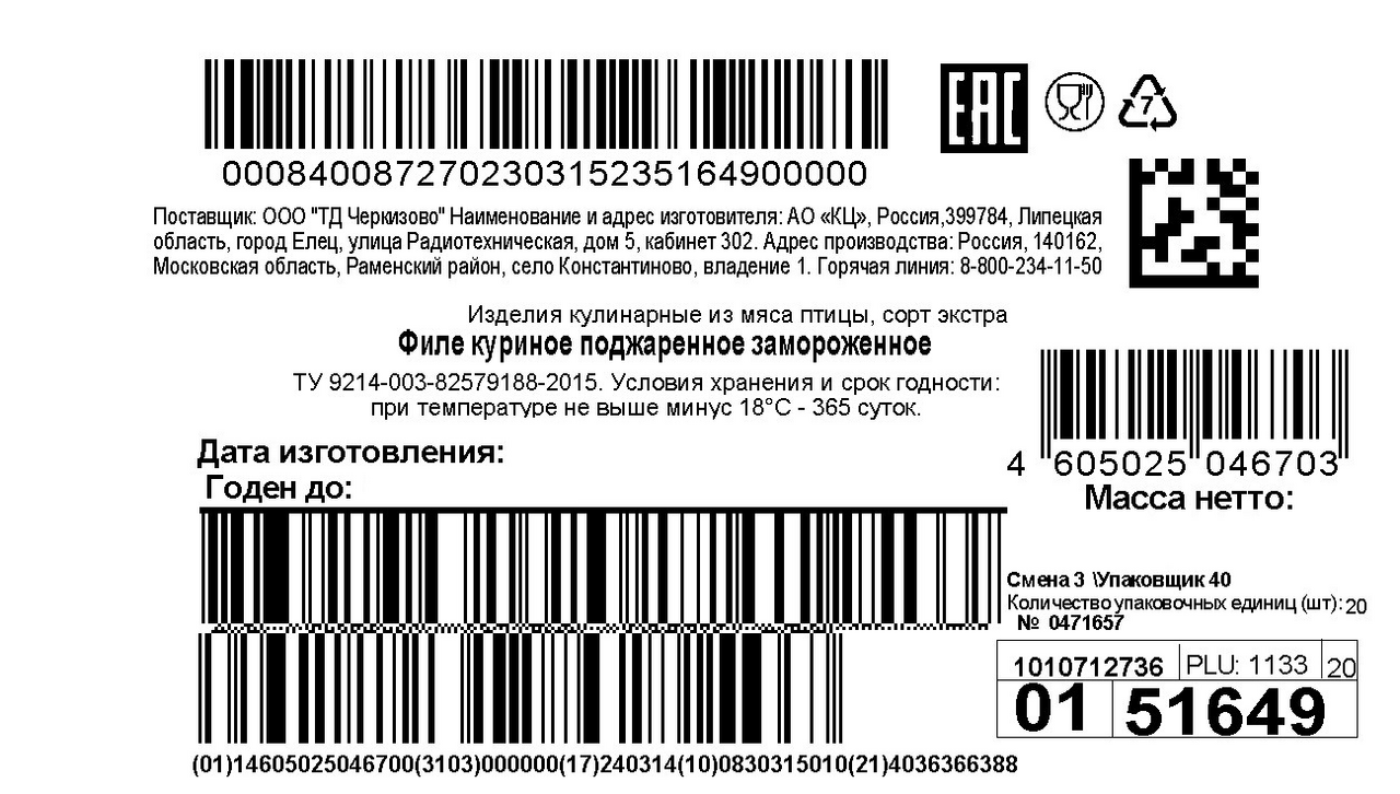 - Вид мяса Курица