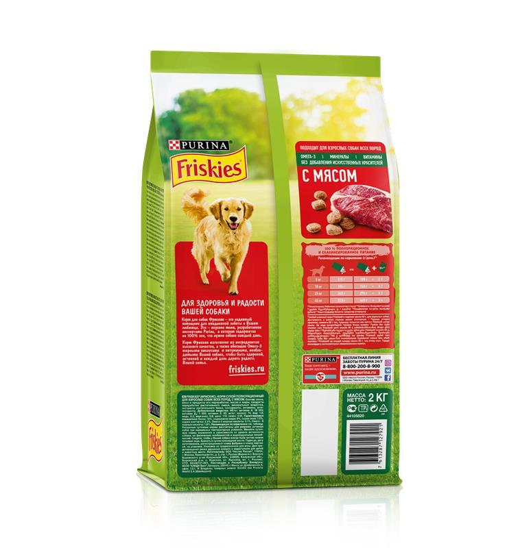 Сухой корм Friskies, благодаря хрустящей текстуре и мясным ароматам, неизменно вызывает аппетит. Но пользу приносит и сама структура гранул: она позволяет очищать зубы от бактериального налета и тем самым противостоит образованию зубного камня.Эксперты Purina создали Friskies для взрослых питомцев — сухой корм для собак с белками для энергии, антиоксидантами для защиты клеток и незаменимыми жирными кислотами для укрепления естественного иммунитета. 100% полнорационное и сбалансированное питаниеДля здоровья и радости вашей собакиКорм для собак Friskies содержит ОМЕГА-3, витамины и минералыКорм для собак сухой подходит для взрослых собак всех пород Без добавления искусственных красителей