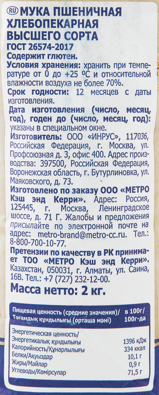 METRO Chef Мука пшеничная хлебопекарная высший сорт, 2кг