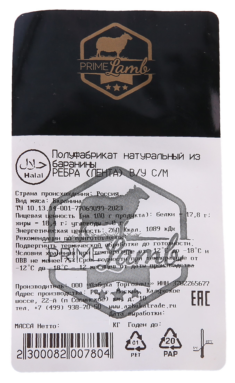 Ребра бараньи Prime Lamb Халяль Лента замороженные, ~2кг