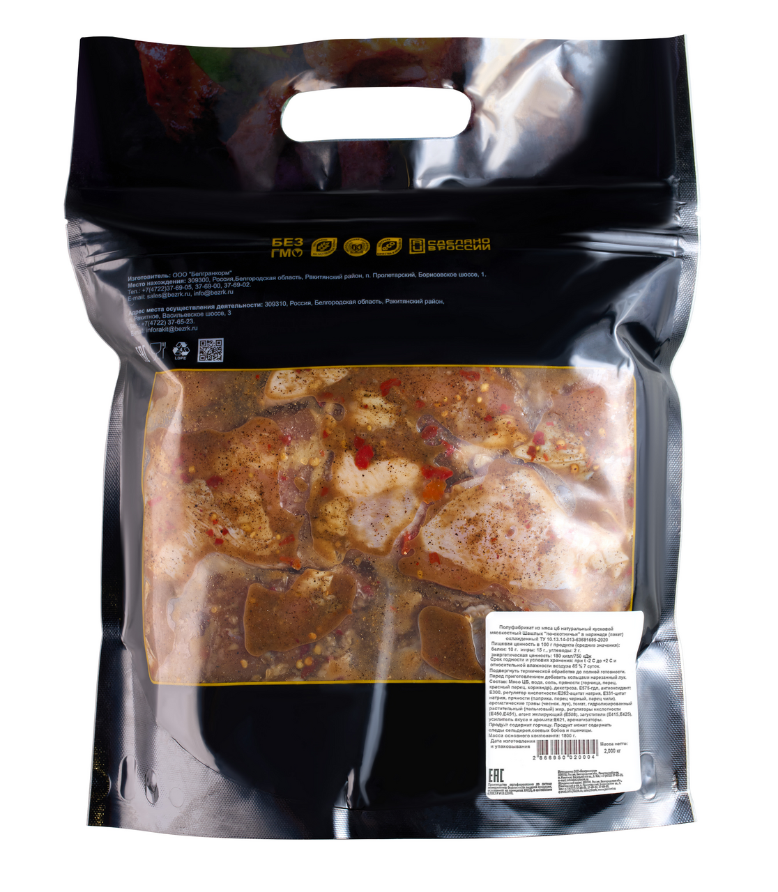 Белгранкорм использует только отборное, свежее мясо, чтобы шашлык стал настоящим произведением кулинарного искусства. Приготовлен из куриных окорочков с добавлением репчатого лука, уксуса и ароматных специй. Вам осталось лишь нанизать кусочки на шампуры или выложить на решетку для гриля и приготовить на мангале. Кроме того, их можно запечь в духовке или обжарить на сковороде. В готовом виде продукт отличается нежной и сочной текстурой, а также приятным вкусом и ароматом.