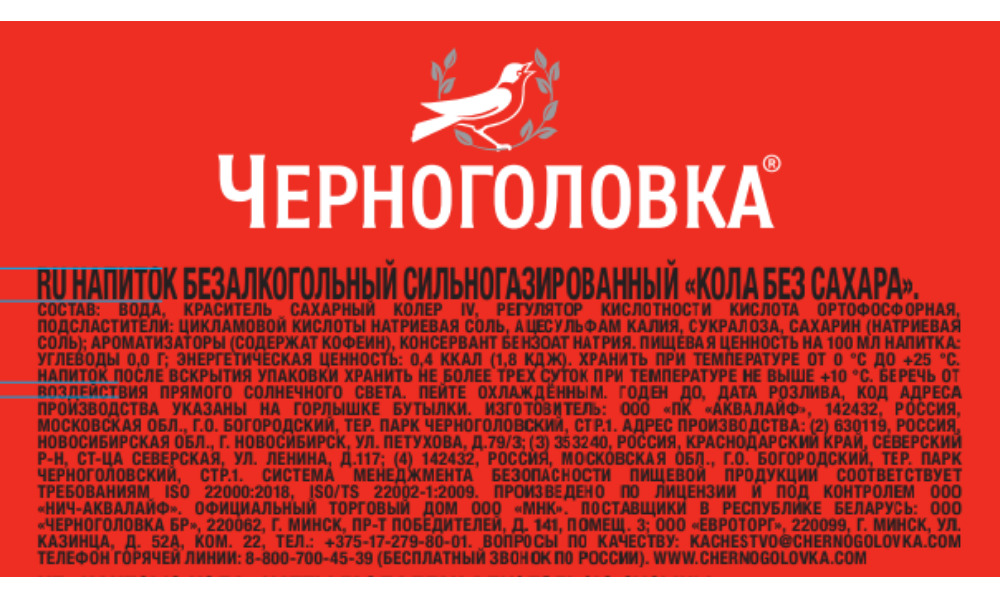 Кола без сахара Черноголовка – такая же бодрящая, освежающая и вкусная, как и классическая! Любимый напиток для тех, кто ценит истинный вкус и следит за фигурой!