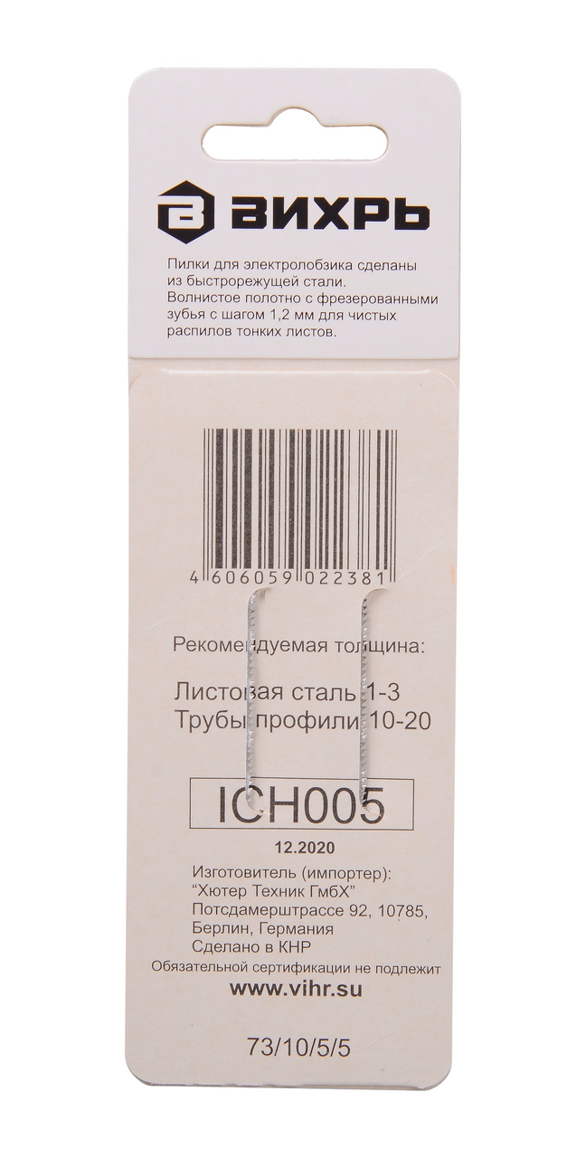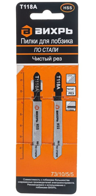 Пилка Вихрь для лобзика Т118A 76 x 50мм, 2шт