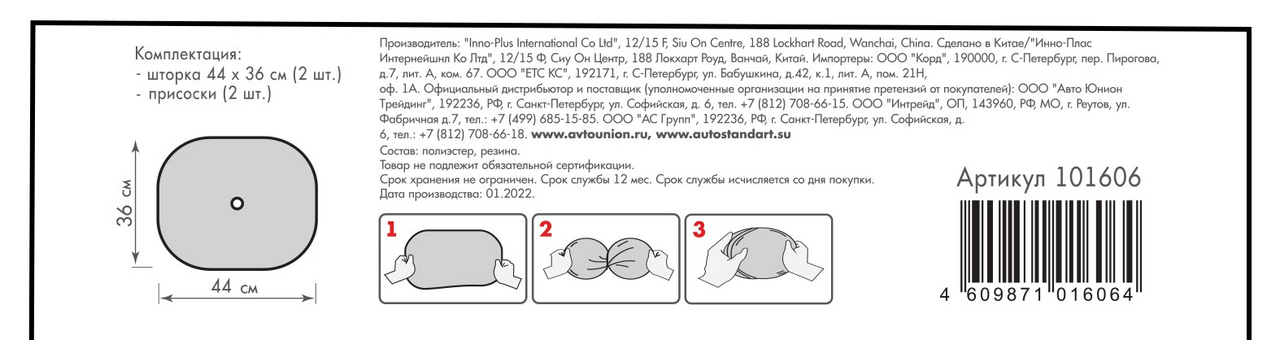 Шторки Autostandart солнцезащитные 44 x 36см, 2шт