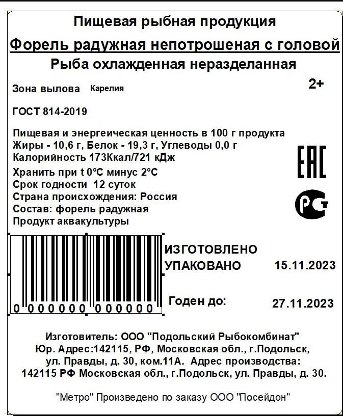 Форель охлажденная, ~3-4кг - мясо форели является низкокалорийным продуктом, но при этом содержит большое количество ценного белка. В его составе также присутствуют незаменимые жирные кислоты Омега-3 и Омега-6, витамины А, Е, D и важные для организма человека микроэлементы: фосфор, кальций, магний, железо и другие. Эту рыбу можно жарить, варить, запекать, готовить на пару или на гриле, солить – в любом случае она порадует вас нежной текстурой и приятным вкусом.