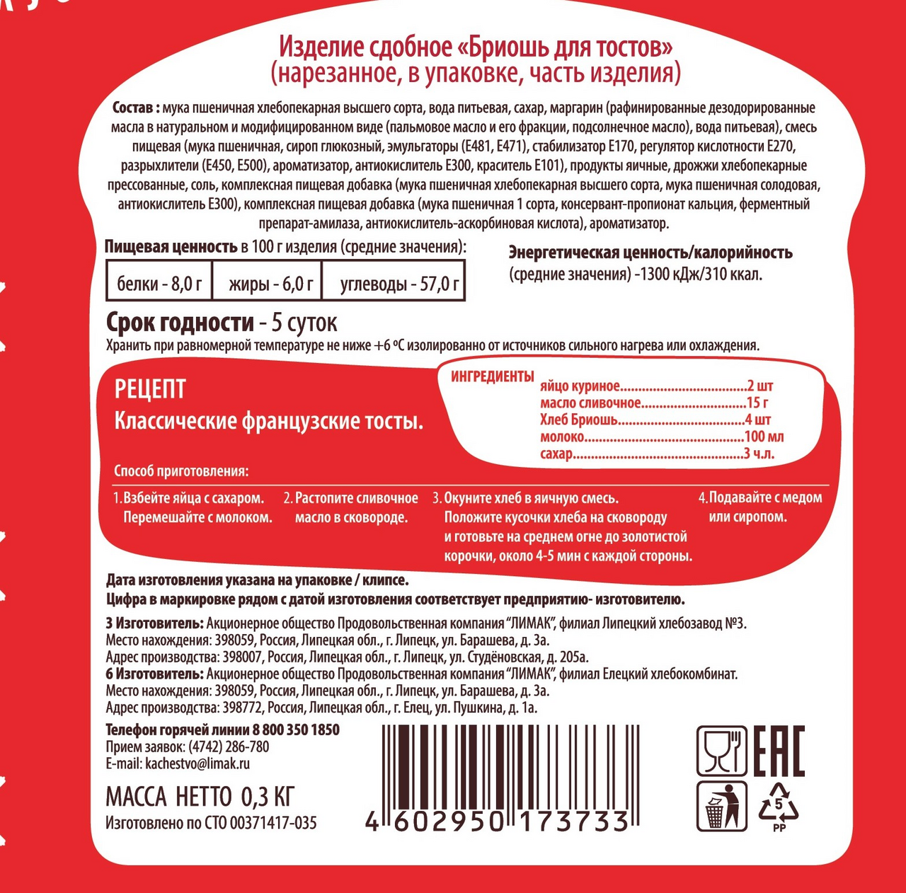 Хлеб тостовый Лимак Бриошь, 300г