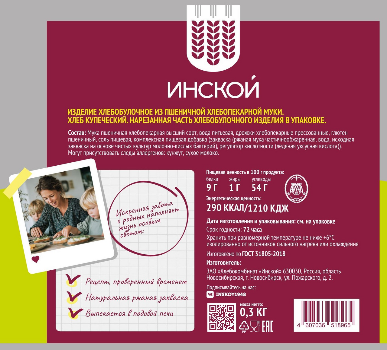 Хлеб Инской Купеческий, 300г