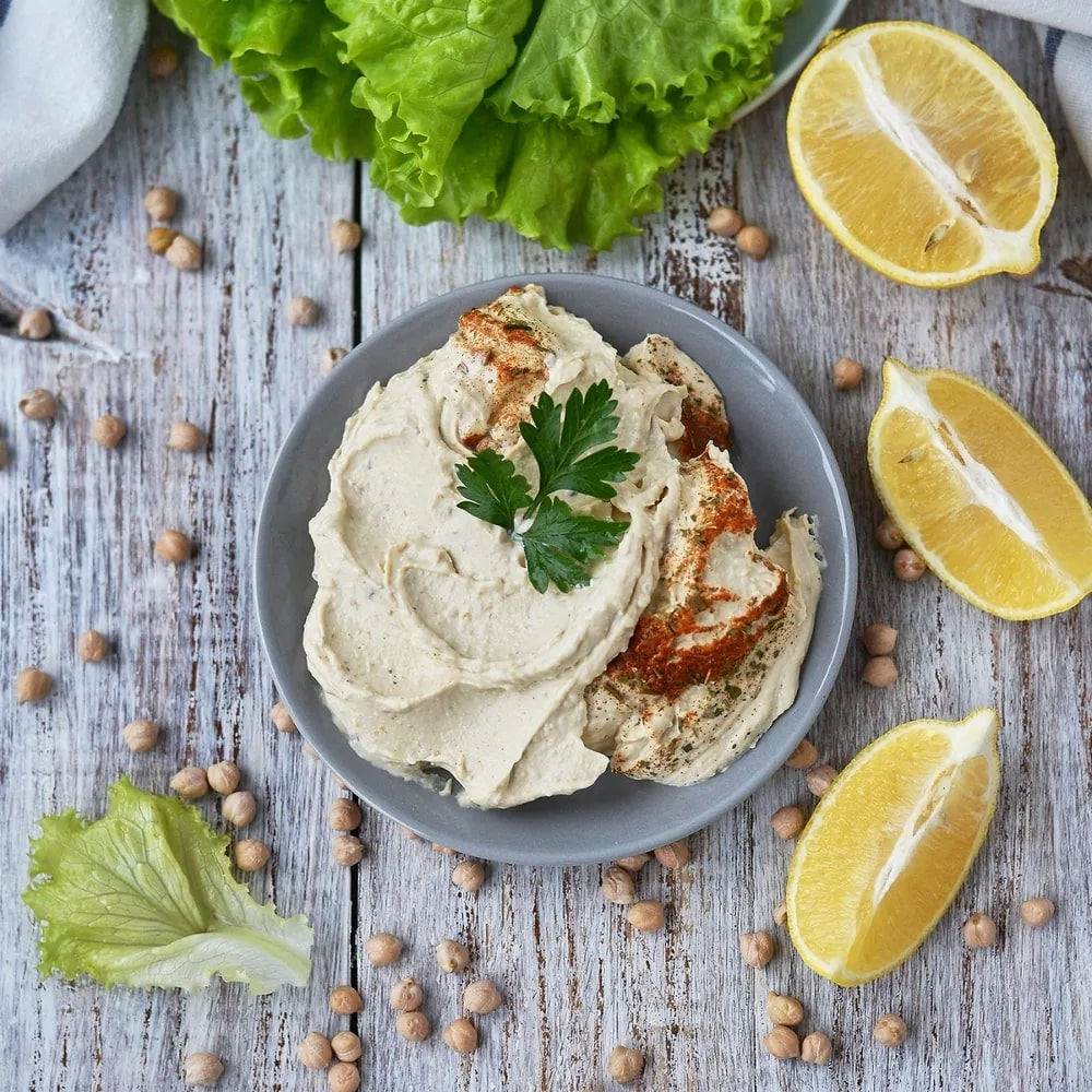 Восхитительная закуска, изготовленная из нута с добавлением кунжутной пасты, оливкового и растительного масел и соли. Хумус – это вегетарианский продукт, который можно употреблять в самостоятельном виде, а также в сочетании с питой, лавашом, кукурузными чипсами. Он хорошо сочетается с блюдами, приготовленными на гриле, овощами, соленьями. Имеет нежную кремовую текстуру, отлично утоляет голод, служит источником растительной клетчатки, ненасыщенных жиров и белка. Раньше эта закуска была популярна только в странах Ближнего Востока, однако в последние десятилетия получила широкую известность во всем мире. Хумус готовится из высококачественных, тщательно подобранных ингредиентов, поэтому обладает поистине превосходным вкусом.