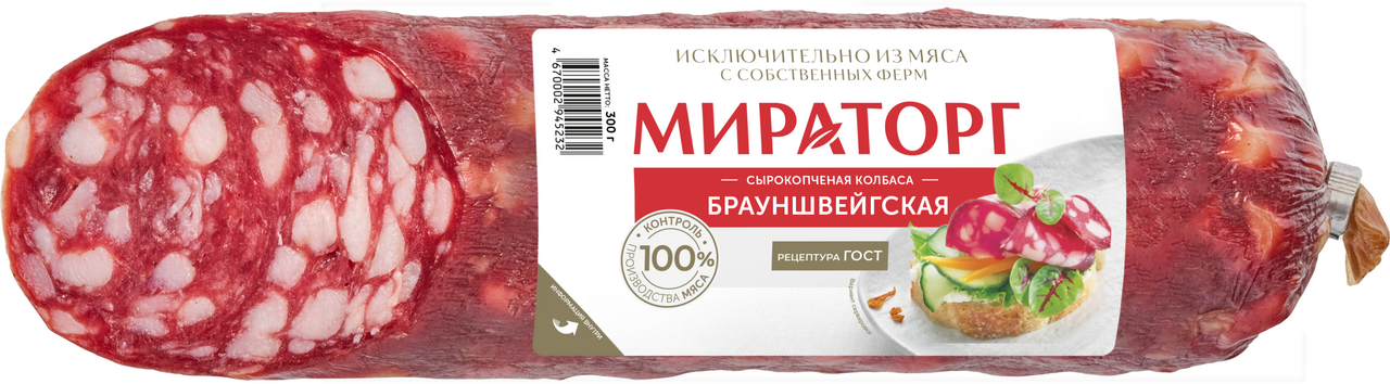 Колбаса Мираторг брауншвейгская сырокопченая полусухая, 300г