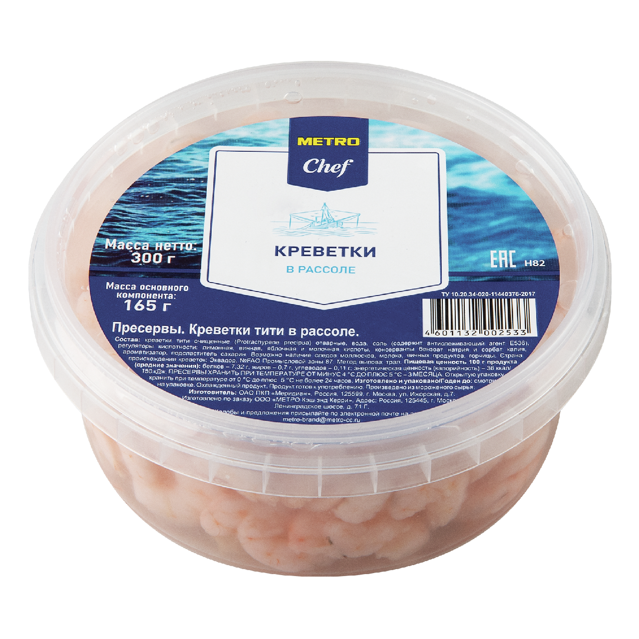 Креветки тити Protrachypene precipua Metro Chef в рассоле в удобной пластиковой упаковке. Регион вылова - Эквадор. Продукт полностью готов к употреблению.