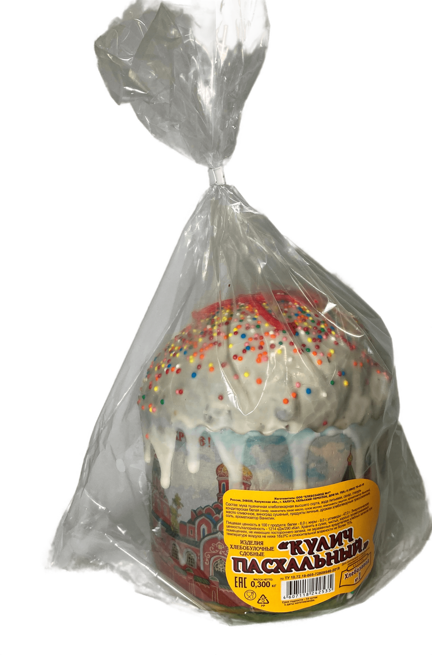 Кулич пасхальный создан по старорусской рецептуре с использованием творога. Мягкое и воздушное тесто кажется особенно вкусным за счет добавления большого количества изюма, вяленой клюквы и цукатов апельсина. Верхушку выпечки украшает белоснежная помадка, усыпанная тыквенными семечками, безе и другими вкусностями.