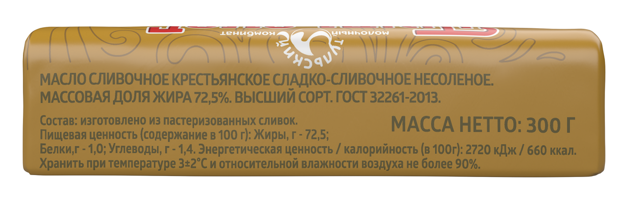 Масло сливочное Тульский Крестьянское 72.5%, 300г