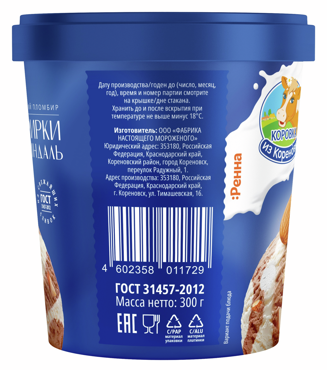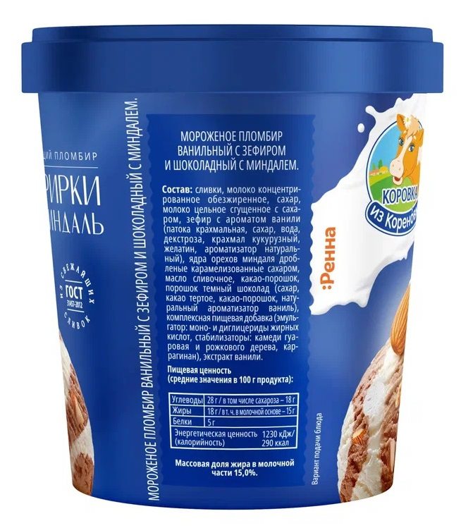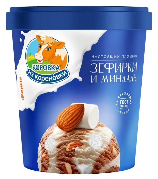 Мороженое пломбир Коровка из Кореновки зефир и миндаль, 300г