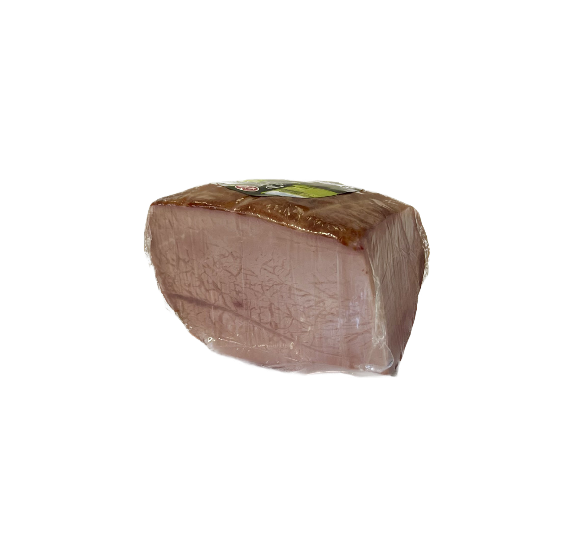 Это плотное и нежное мясо с аппетитным слоем жира, гарантирующим сочность и обеспечивающим защиту блюда от пересыхания при термической обработке. Это деликатес подается тонкими ломтиками как холодная закуска, подходит для приготовления закусок и бутербродов.