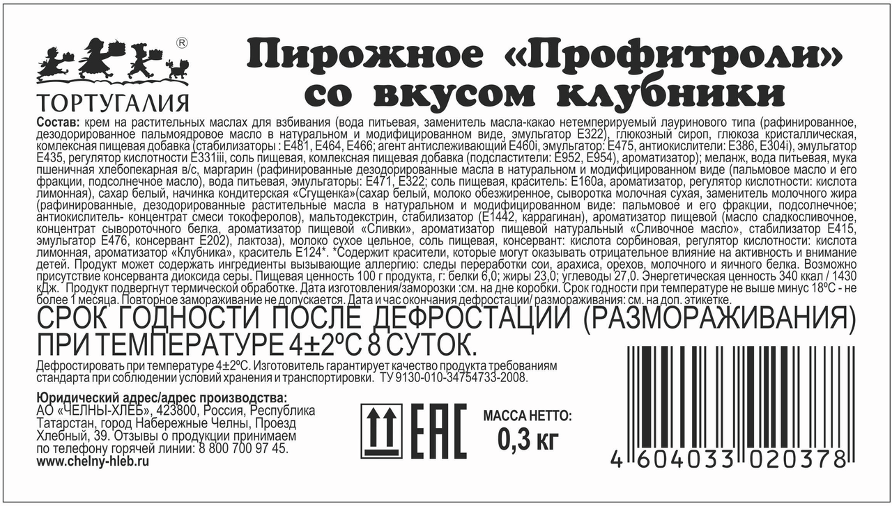 Крем на растительных маслах для взбивания (вода питьевая, заменитель масла-какао нетемперируемый лауринового типа (рафинированное, дезодорированное пальмоядровое масло в натуральном и модифицированном виде, эмульгатор Е322), глюкозный сироп, глюкоза кристаллическая, комплексная пищевая добавка (стабилизаторы: Е481, Е464, Е466; агент антислеживающий Е460i, эмульгатор: Е475, антиокислители: Е386, Е304i), эмульгатор Е435, регулятор кислотности Е331iii, соль пищевая, комплексная пищевая добавка (подсластители: Е952, Е954), ароматизатор); меланж, вода питьевая, мука пшеничная хлебопекарная в/с, маргарин (рафинированные дезодорированные масла в натуральном и модифицированном виде (пальмовое масло и его фракции, подсолнечное масло), вода питьевая, эмульгаторы Е471, Е322, соль пищевая, краситель Е160а, ароматизатор, регулятор кислотности лимонная кислота), сахар белый, начинка кондитерская "Сгущенка" (сахар белый, молоко обезжиренное, сыворотка молочная сухая, заменитель молочного жира (рафинированные, дезодорированные растительные масла в натуральном и модифицированном виде: пальмовое и его фракции, подсолнечное, антиокислитель концентрат смеси токоферолов, мальтодекстрин, стабилизатор (Е1442, каррагинан), ароматизатор пищевой (масло сладкосливочное, концентрат сывороточного белка, ароматизатор пищевой "Сливки", ароматизатор пищевой натуральный "Сливочное масло", стабилизатор Е415, эмульгатор Е476, консервант Е202), лактоза), молоко сухое цельное, соль пищевая, консервант кислота сорбиновая, регулятор кислотности лимонная кислота, ароматизатор Клубника, краситель Е124.