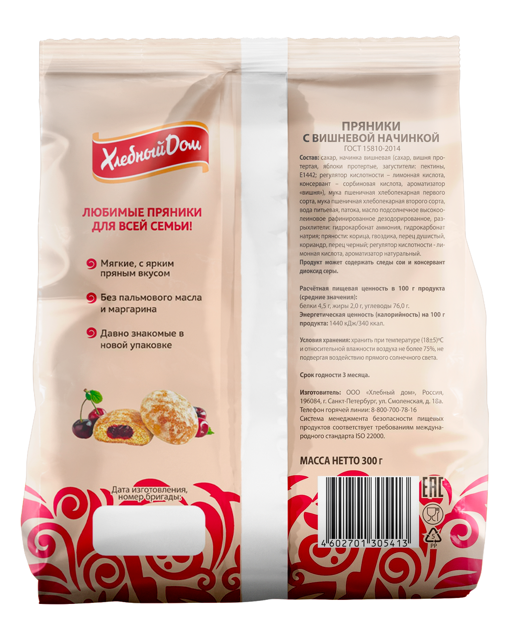 Пряники Хлебный дом с вишневой начинкой, 300г