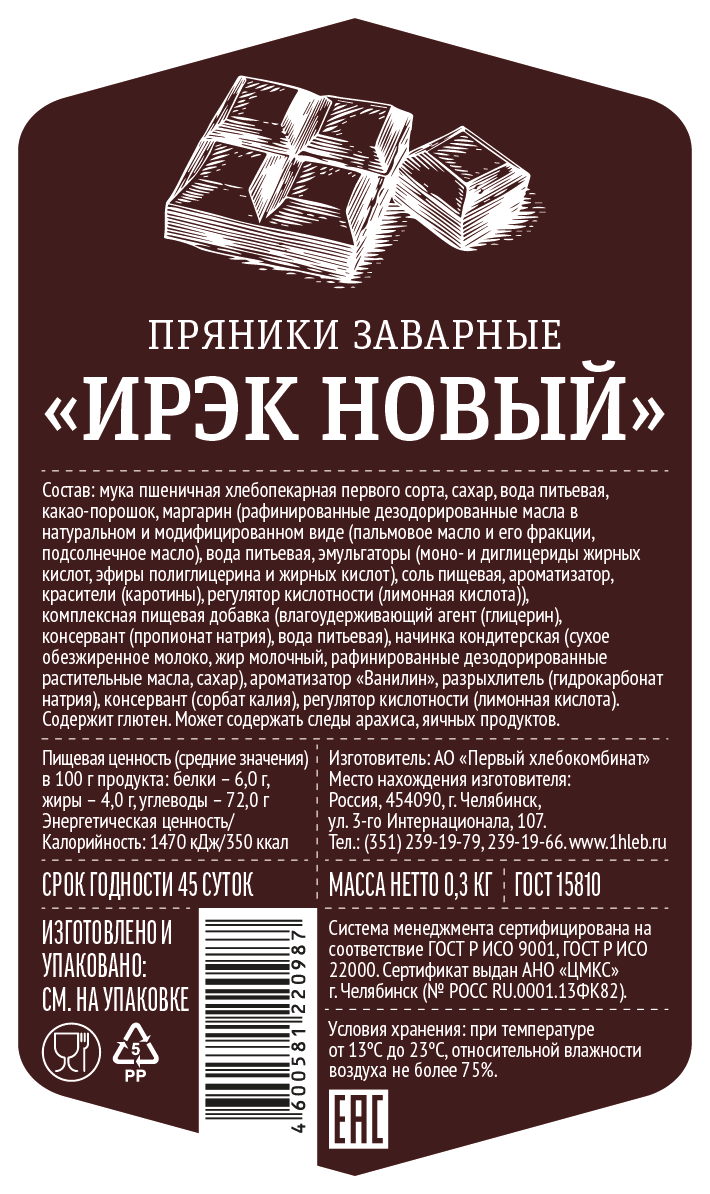 Пряники Первый хлебокомбинат Ирэк новые, 300г
