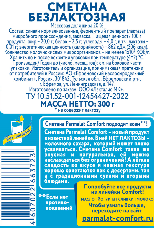 Сметана Parmalat безлактозная 20%, 300г - это безлактозный продукт, который легко усваивается и сохраняет полезные и питательные свойства молока. Подходит как для людей с непереносимостью лактозы, так и для всей семьи. Создано для тех, кто предпочитает натуральные и полезные продукты. Способствует улучшению работы желудочно-кишечного тракта, помощь в очистке организма от токсинов и шлаков.