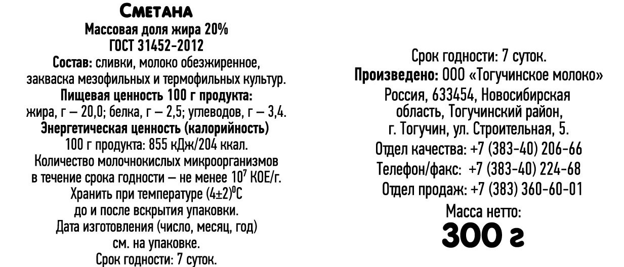 Молочный продукт, изготовленный из натуральных сливок с добавлением чистых культур полезных микроорганизмов. Не содержит растительных масел, консервантов и стабилизаторов. Продукт сохраняет пользу цельного молока, а благодаря нежной консистенции и приятному сливочному вкусу хорошо дополняет различные блюда. Сметана придаёт более мягкий вкус творогу, салату, а также первым или вторым блюдам. На основе сметаны получаются неплохие соусы и кремы для тортов. Продукция гармонично сочетается с блинчиками, вафлями и сырниками.