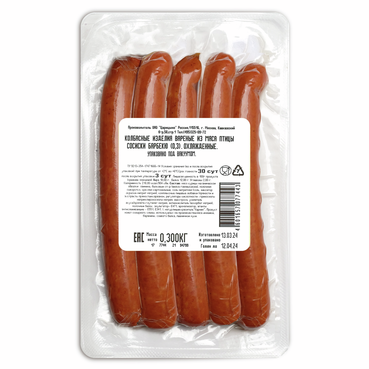 Сосиски из мяса птицы Царицыно барбекю вареные, 300г